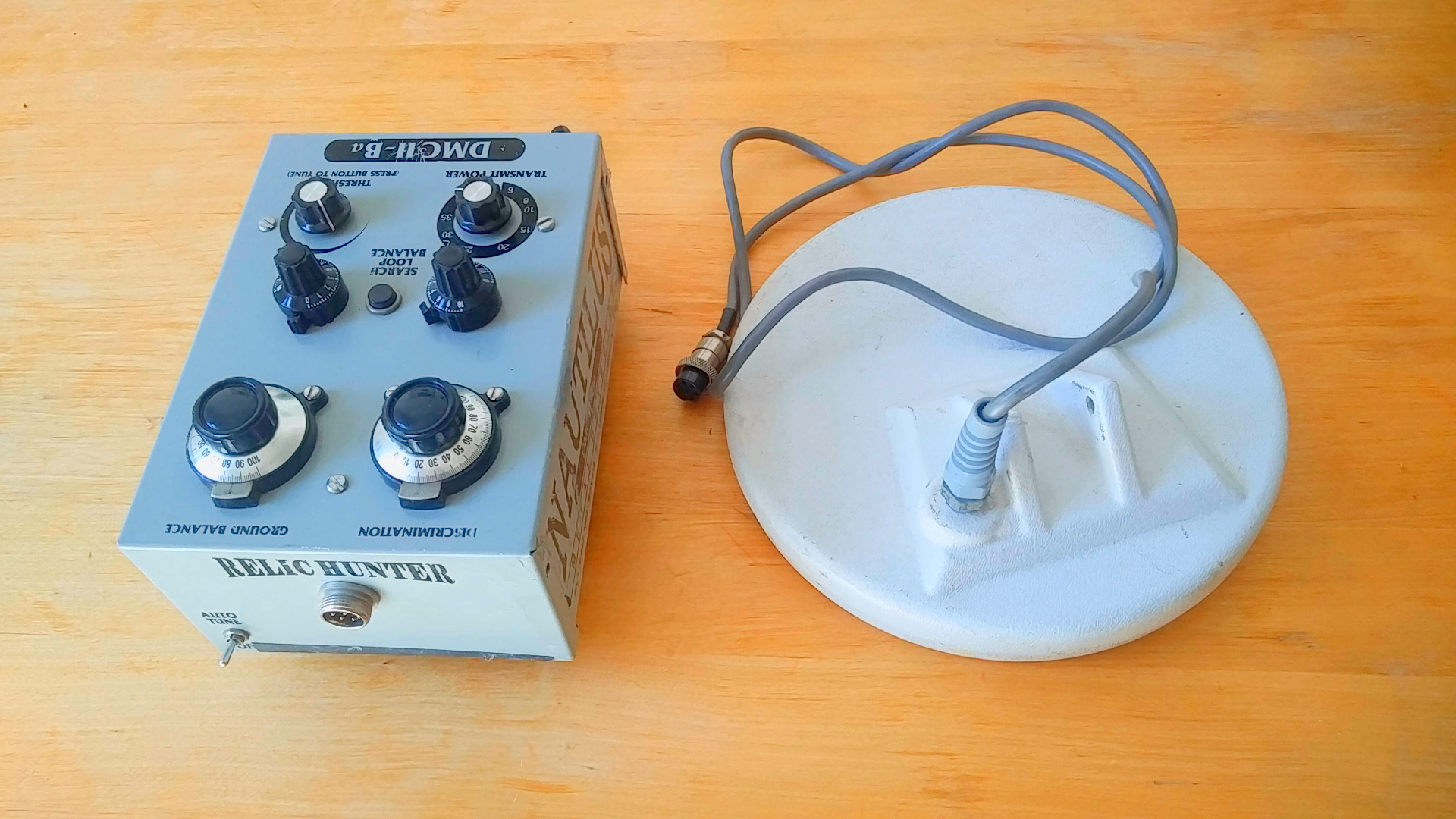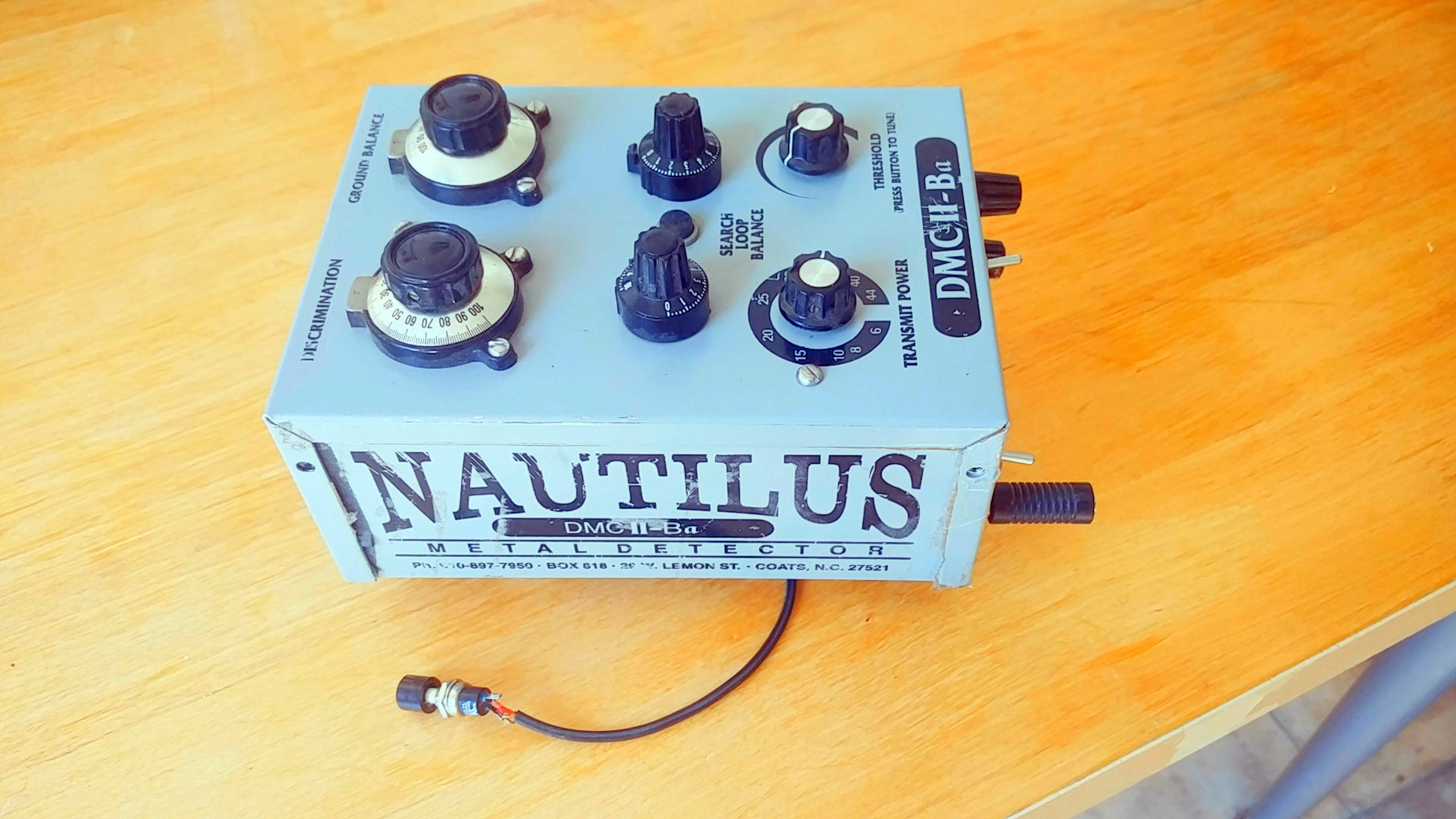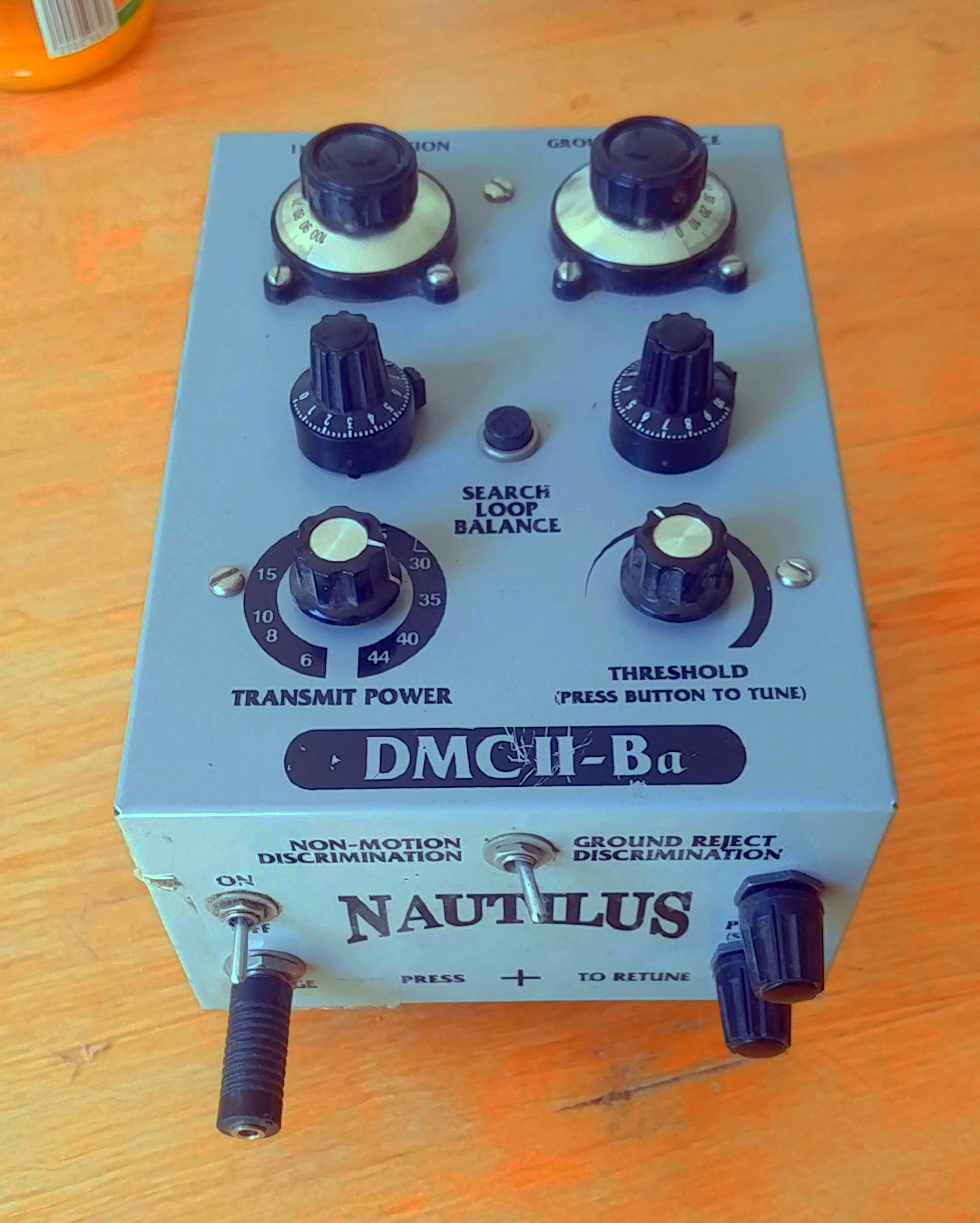 The Nautilus DMC II-BA has been of duty for a while since it was not working properly and I got myself other toys. The machine has been modifified like separate sensitivity adjustment for each channel. As far as i remember the all metall channel works but the discriminator channel not.