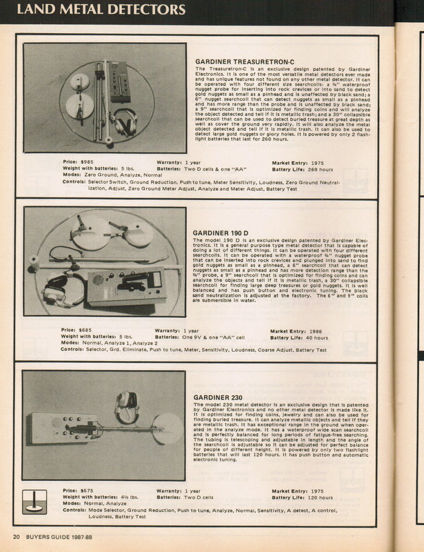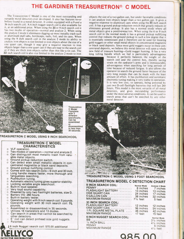 I scanned a few pages from "Traesure Hunters 1987-88", "Buyers Guide" and four pages from a 1987 Kellyco catalog. My favorite is the "Treasuretron C model".