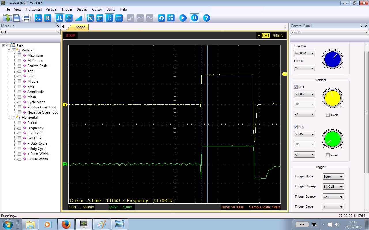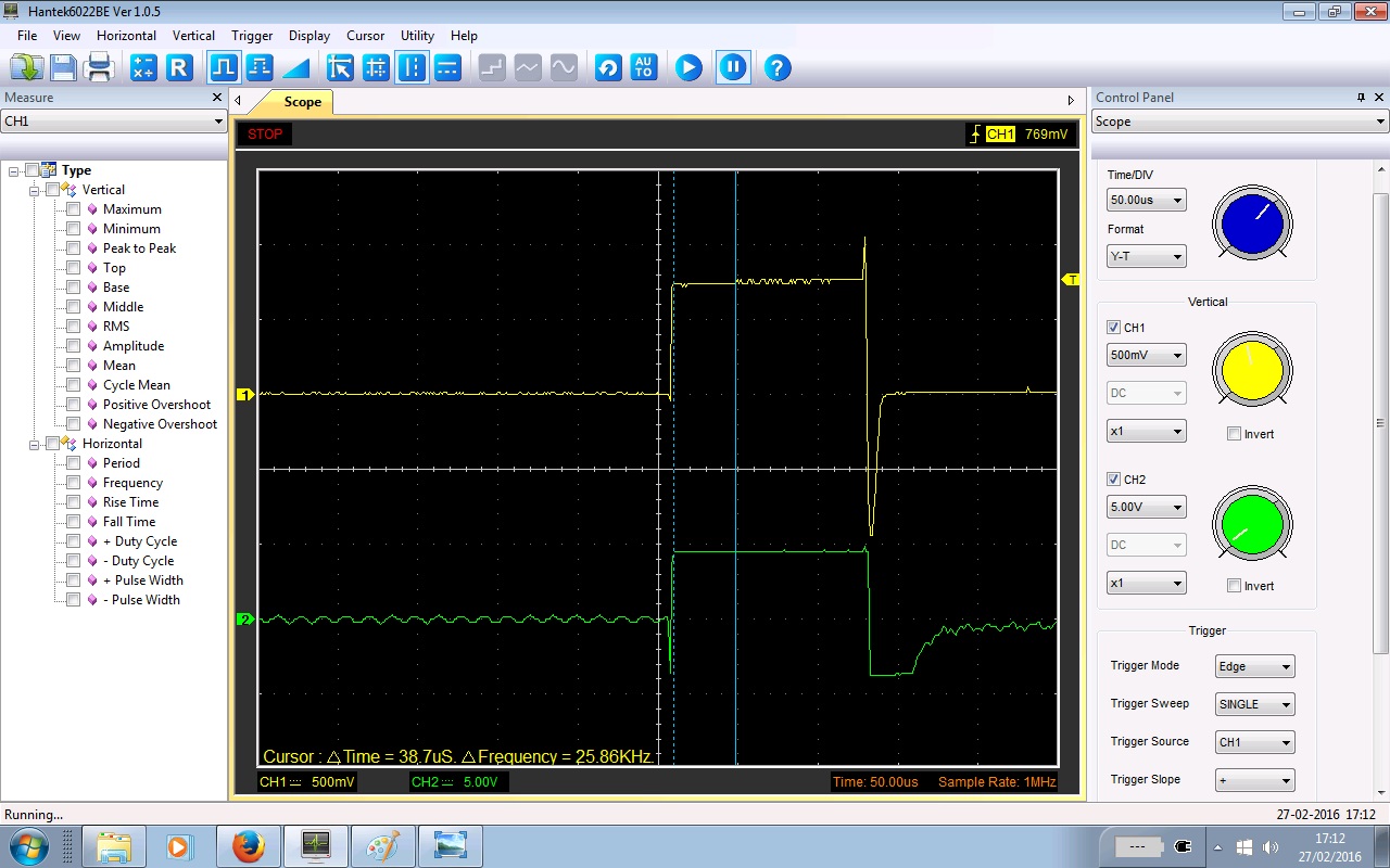 ok tigger is neg slope now tigger level 1V and time/div 5us.
