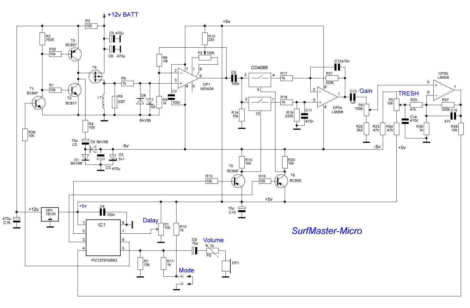 And unless I'm mistaken you have 7805 and 7905 around the wrong way, 7805 is a positive reg. Anyways I believe a very baseline PI circuit with microcontroller timing opens up avenues for playing with pulse widths and sampling schemes. Using different excitation times with otherwise rather plain frontends was the bread of MPS type detectors anyways.