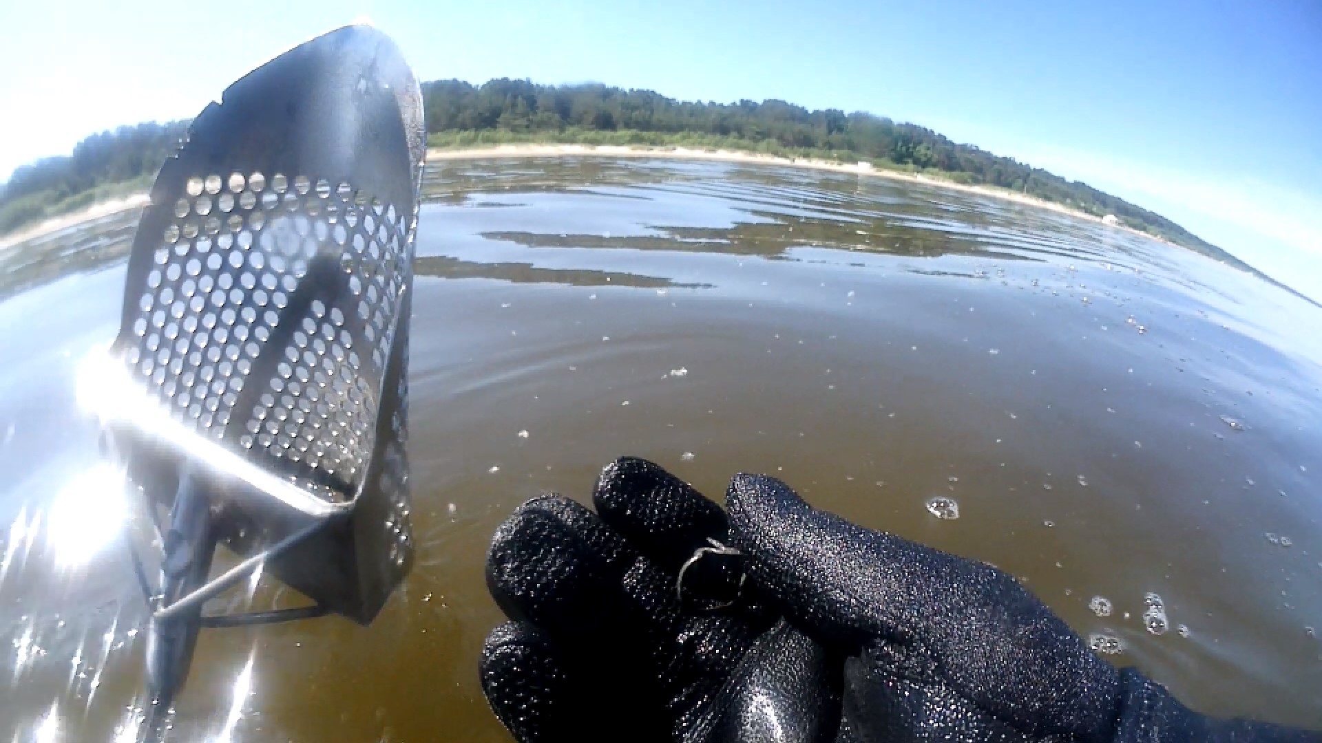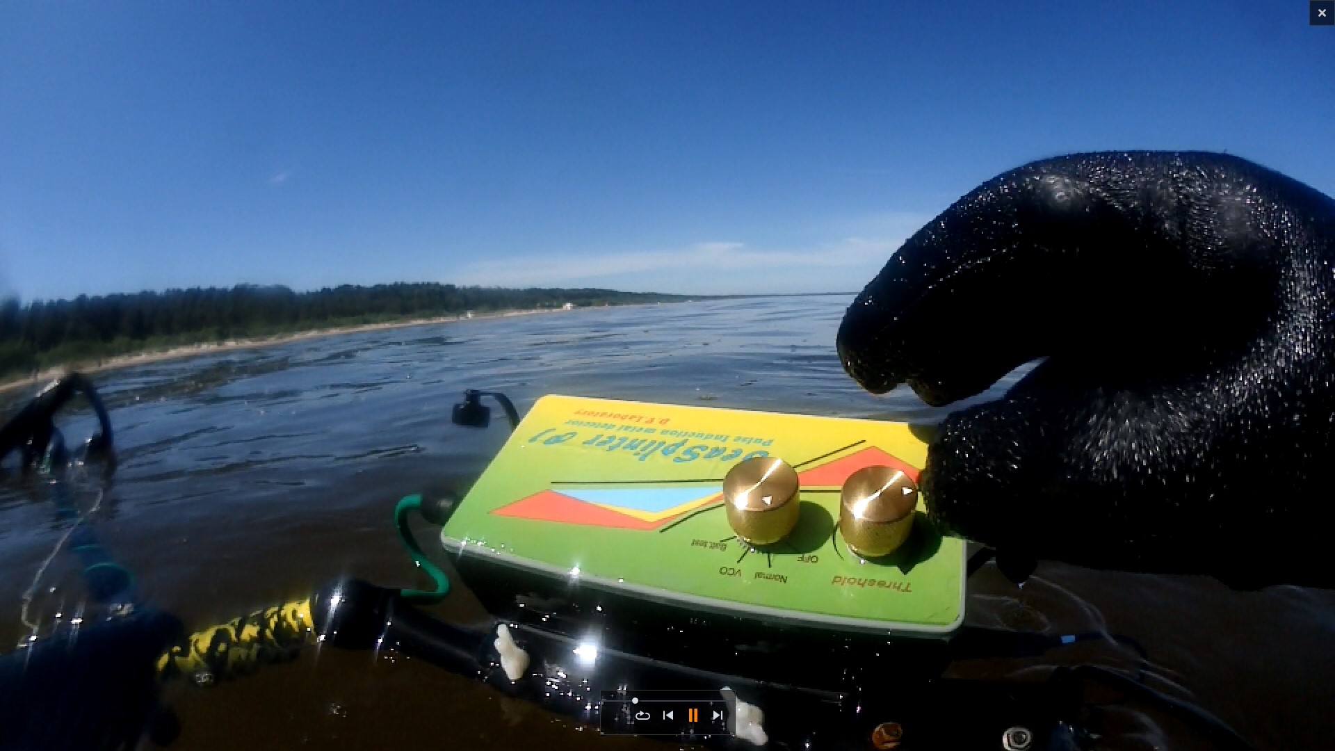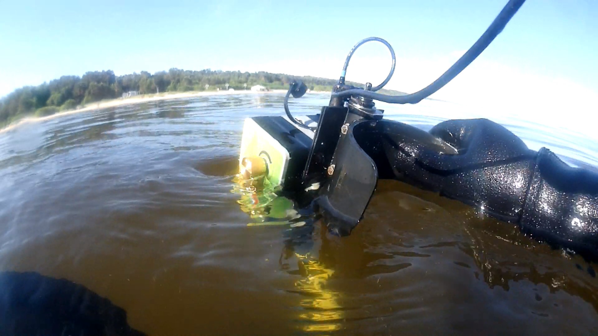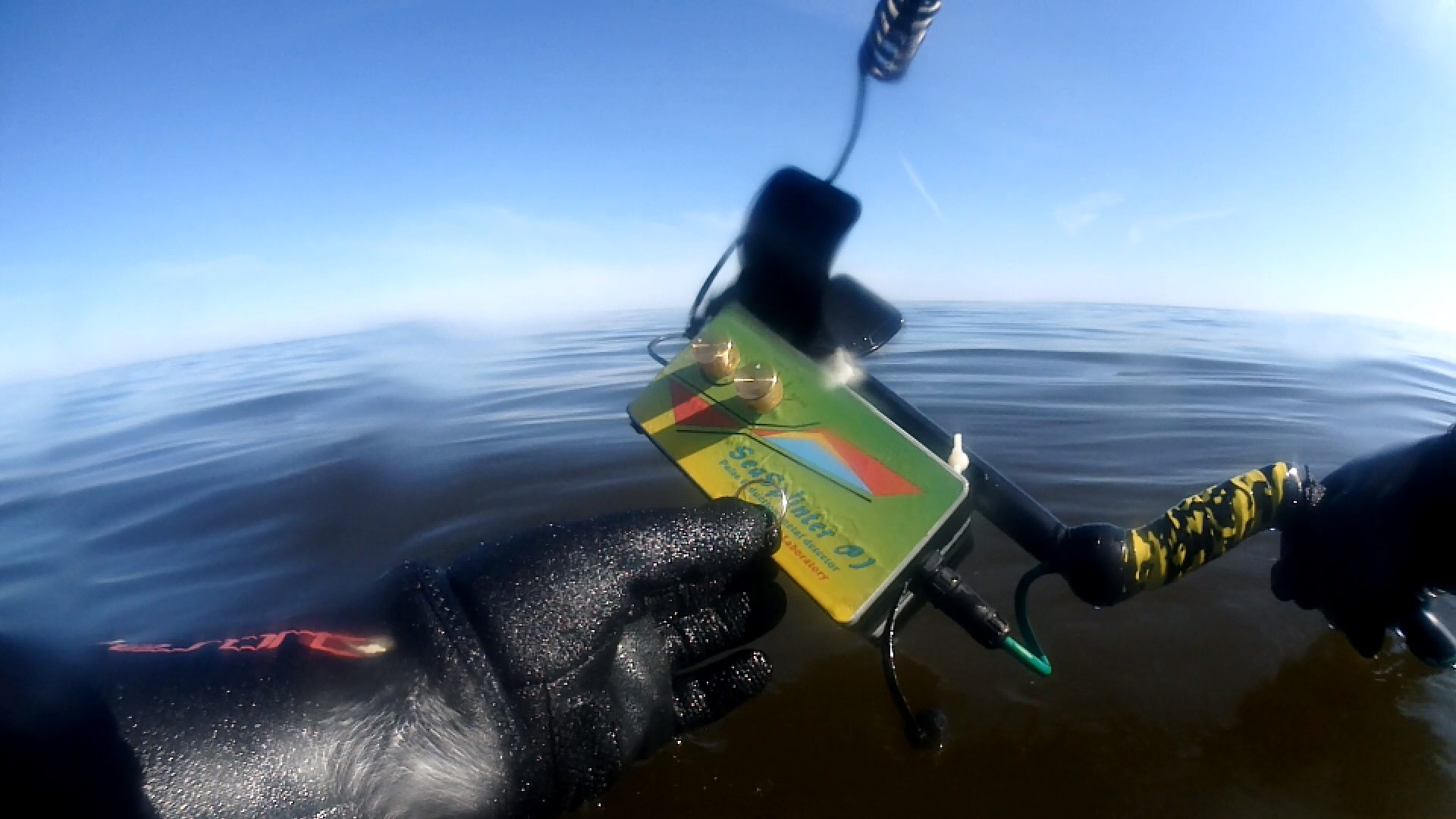 Today I tested the detector in the water. The search was up to his neck in the water.