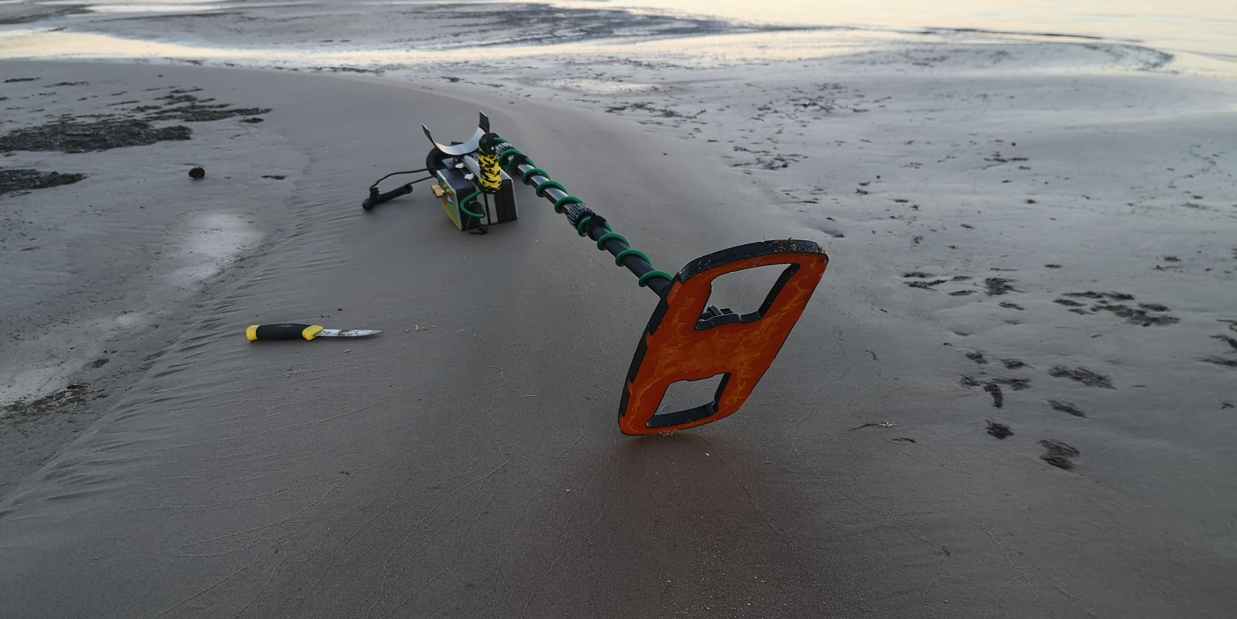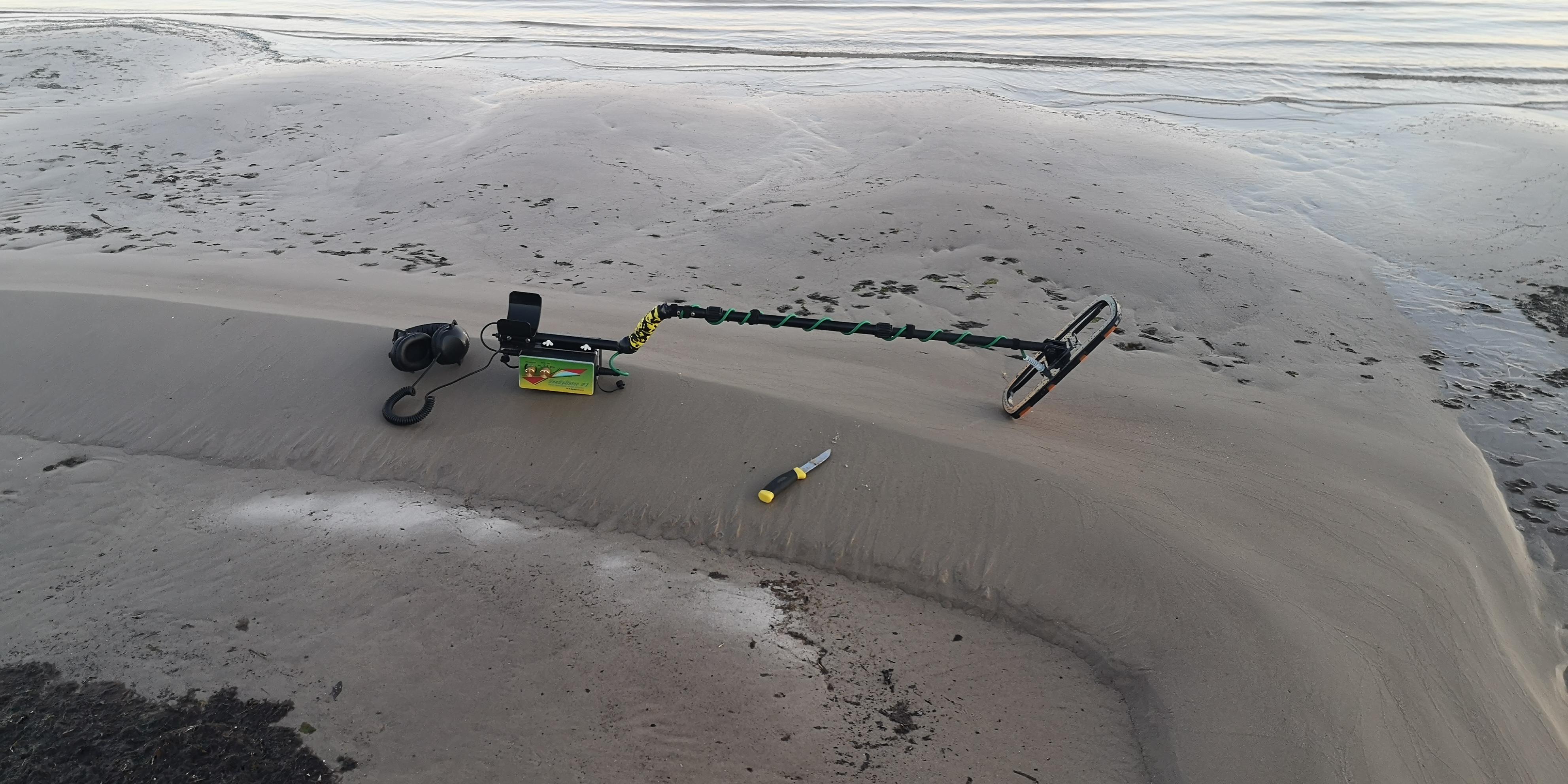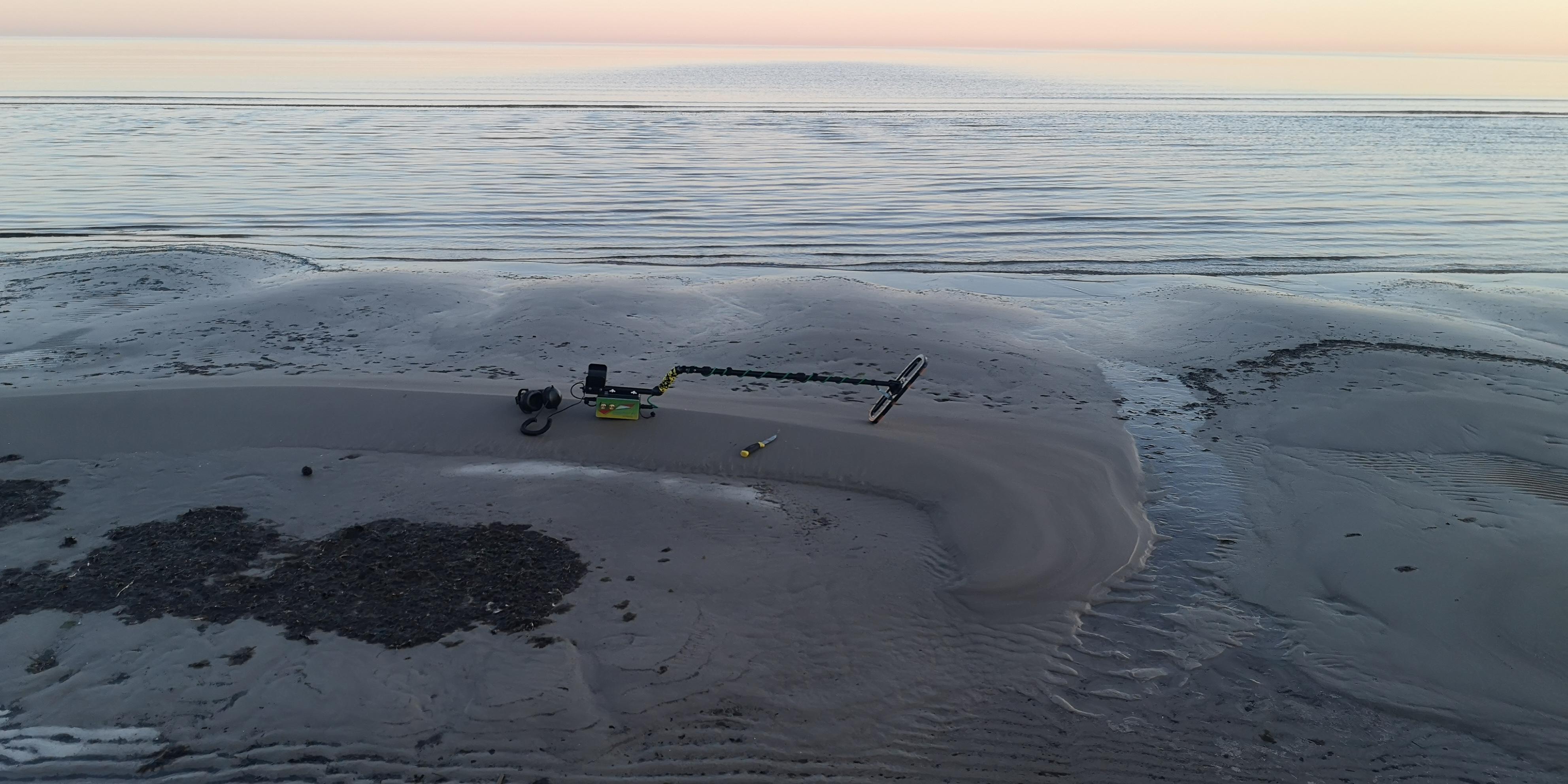The detector is completely ready. Checked for false positives, sea water and wet salty sand. All OK. Looked like an hour found something. The sand is frozen, we have -6 today ...