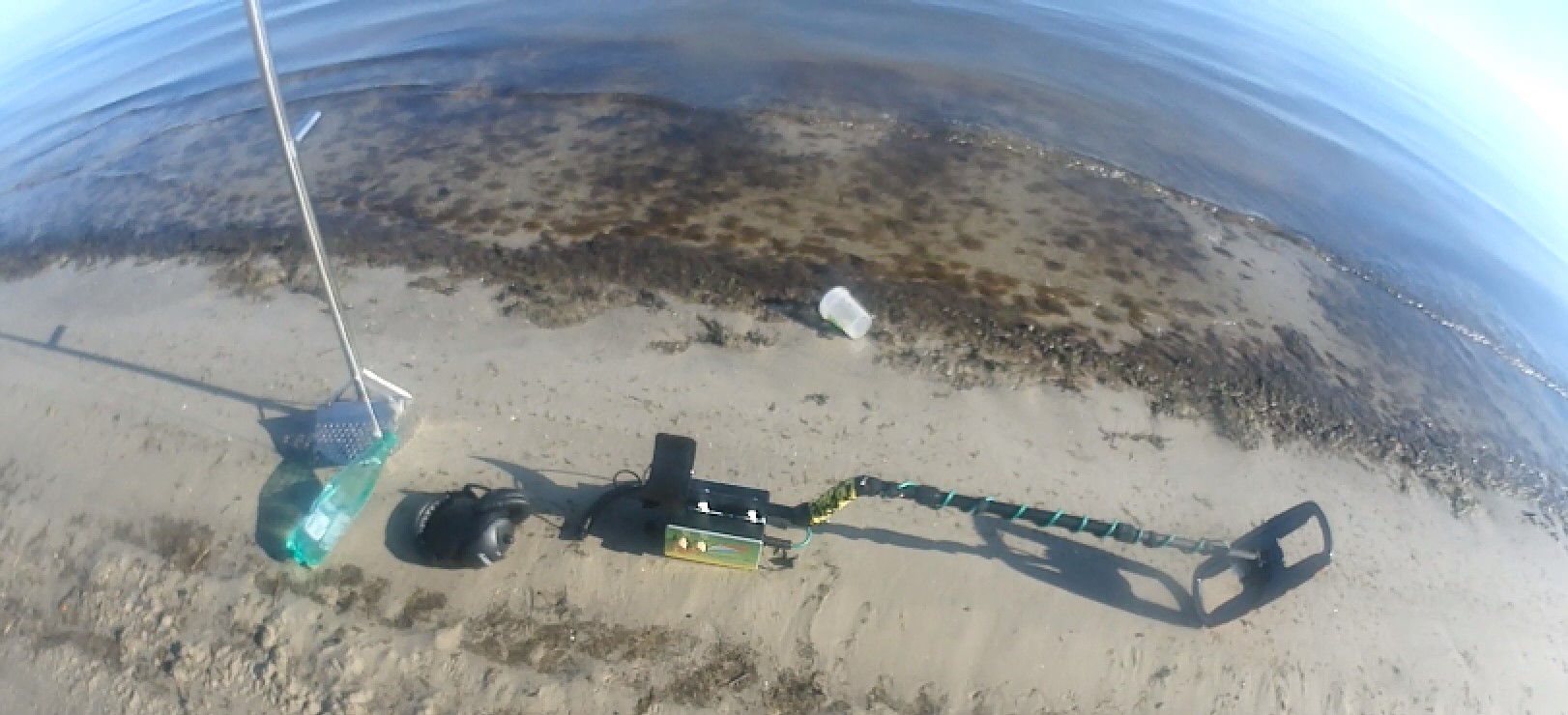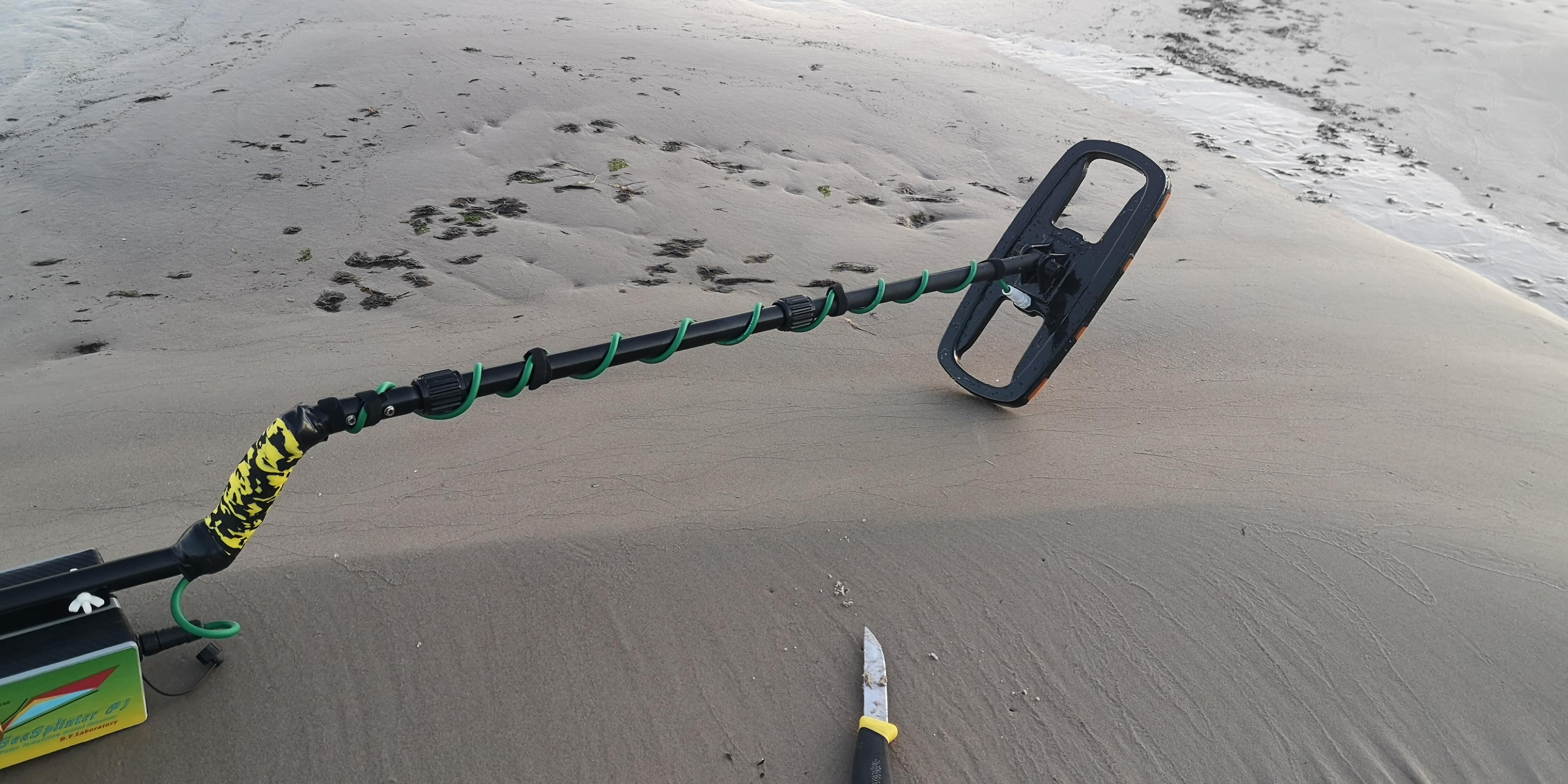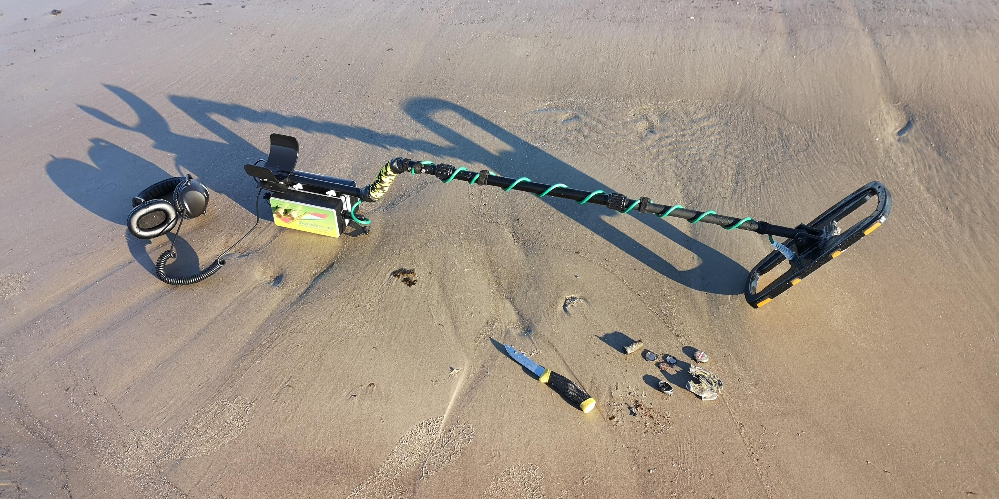The detector is completely ready. Checked for false positives, sea water and wet salty sand. All OK. Looked like an hour found something. The sand is frozen, we have -6 today ...