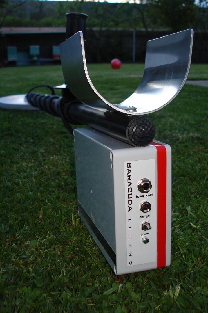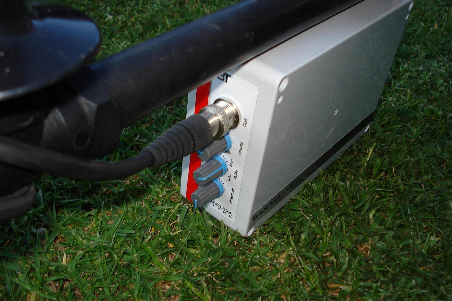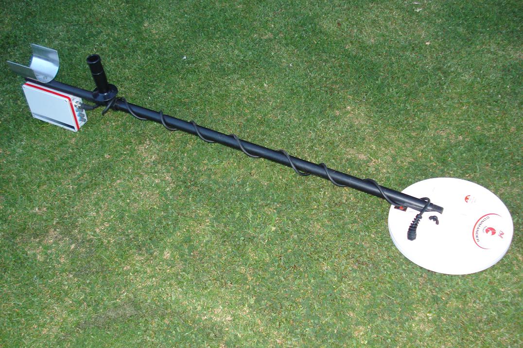 My finished baracuda with Minelab commander mono coil. Baracuda is a great diy p.i. project and it is a very stable, light and simple detector to use. It works lovely on the beach, football fields, playgrounds, etc - on any ground where it is not minerialised as the machine can get quite chatty. I have found that adjusting the external 10k pulse delay pot will reduce ground noise, but you lose sensativity. The only trouble I had from the beginning was the tip127 power transistor, as it could not handle the 9.6 volt battery pack - the machine would not work properly and the tip127 got very hot. I replaced it with a irf9640 which fixed the problem. I also have a gary p.i. pulse 2 which also is a nice project, but the bara punches deeper and rarely do I have to adjust the threshold. I have built two of these circuits - my first bara I etched my own board and purchased parts from element 14/jaycar and the second was silverdogs kit.