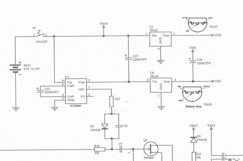 Alexismex's hand drawn schematic also shows 78L05 and ICL7660 inputs connected, to what must be B+.