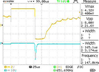 Check the resistor behind the IRF9640, the correct value is 1K.