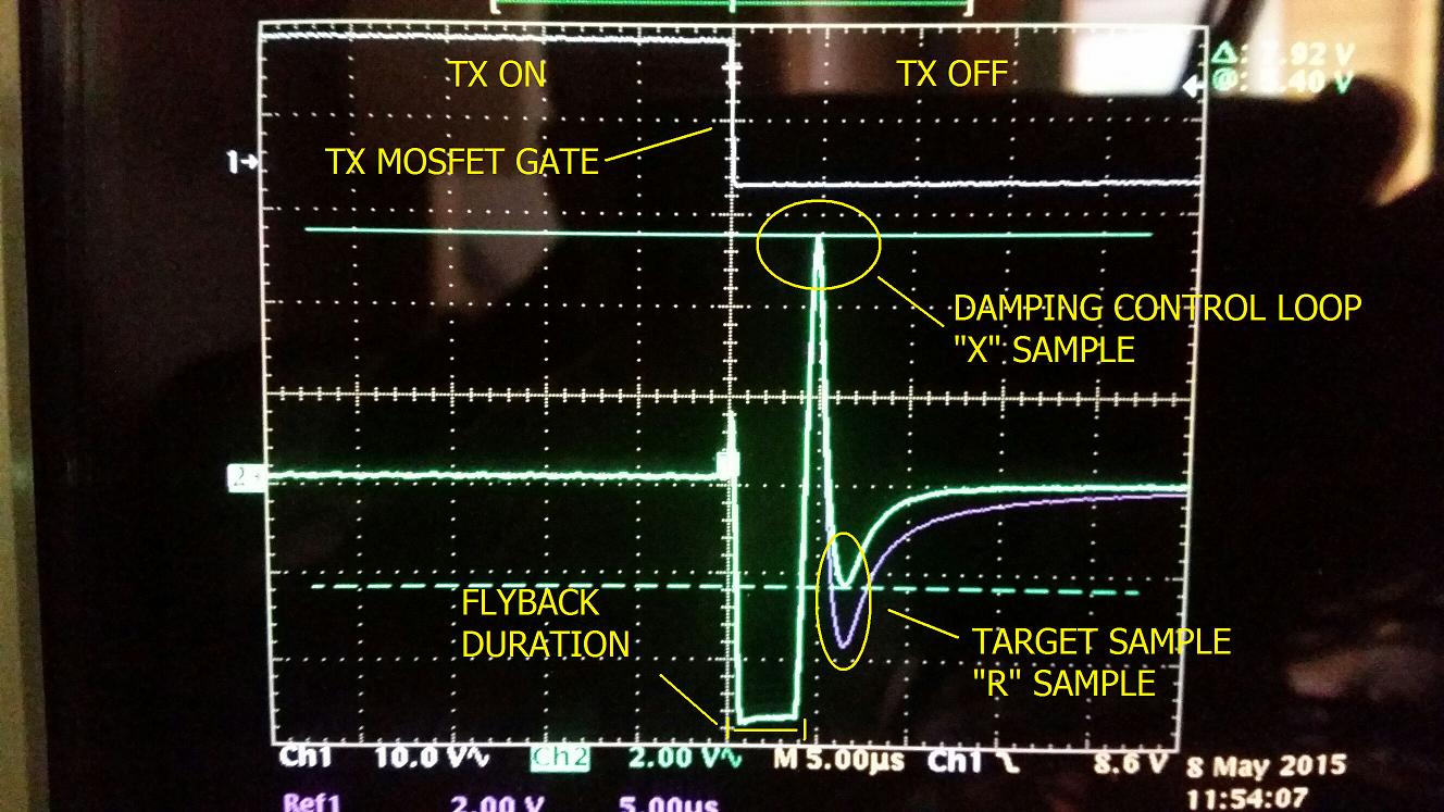 I noticed a method for direct X sampling by detecting the change of voltage at a snubber. With flyback controlled by snubber you get preferably a flat top voltage, and it is dependant upon the changes in permeability of the coil surroundings, or a presence of ferrous objects. The way you do it enables using the same front end for both X and R.