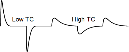 You can initially think of the target response as exactly the same as a continuous sinusoidal VLF response, only truncated at half-sine intervals. But this ignores the exponential start-up inertia of the eddies, so that gets superimposed on the steady-state response. The inertia exponential is most prevalent for high conductors, less so for low conductors.