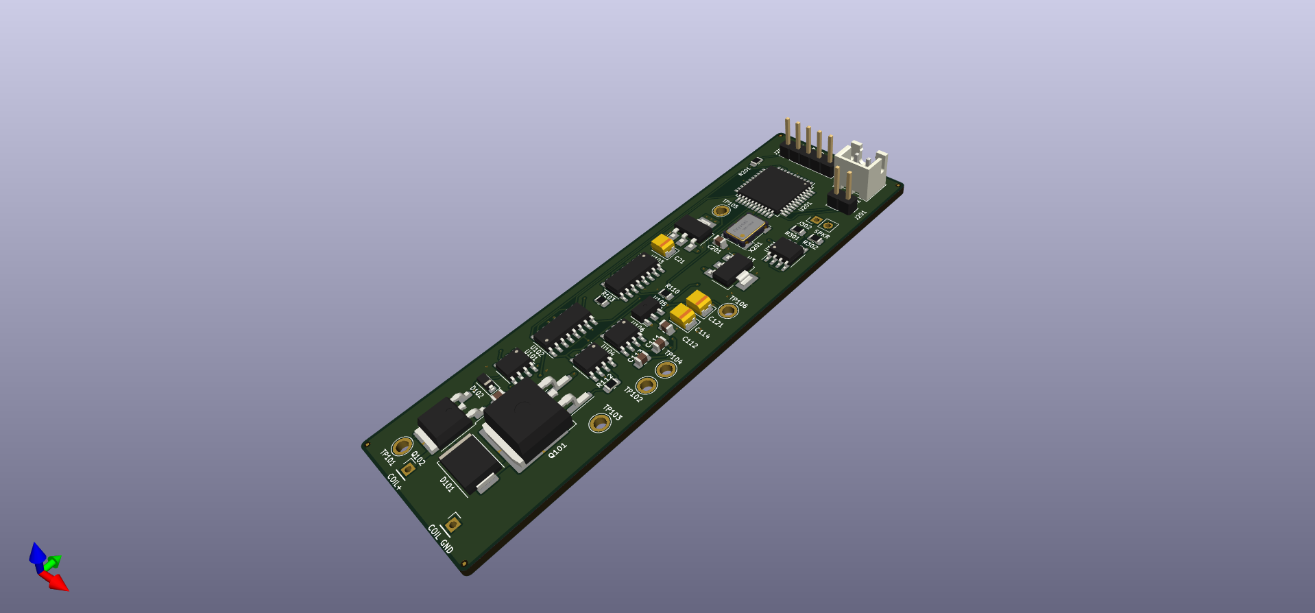 The MagPI Probe is based on the MagPI V3 design provided by moodz in the “Moodz' Awesome Gold Pulse Induction Version 3 - MAGPI V3 Project” thread. There are some changes to the original design. These changes are to permit operation with a 2 cell Li-ion batery pack, provide a measure of safety to the damping circuit if TX timing duration is set a little too long, and to accommodate the small size for the PCB (30 mm x 100 mm). The PCB is intended to fit into a section of 1 ½” PVC pipe. The cpu is changed to a PIC18F047Q43/Q84.