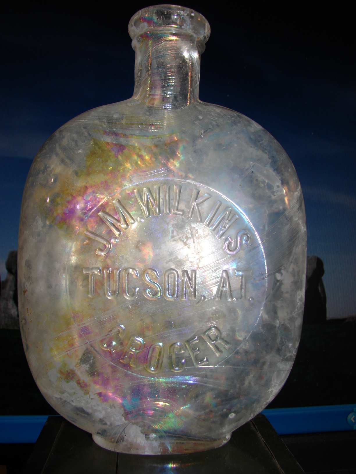ID:	334427ed other devices as well and always go back to the rod. Here in AZ need one with a slide hammer for the top layer. I spoke with Eric Foster years ago about one of his first PI units being built to find roman burn pits. I am taking some plots of pulse responses from dug privies and untouched privies and the surrounding undestrurbed ground. My goal is to build a PI for the explicit purposes of finding these Outhouse pits. Sorry to hijack your thread.....attached a picture of one of my finds, it is an unknown whiskey from 1883. A.T. is of course Arizona Territory. Will keep my education going by reading as much of the old posts as possible. Happy New Year, Karl