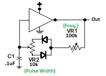 I want to experiment with baracuda and i'm wondering how can i adjust pw and prr adding trimmers. I can't find info on this type of oscillator. i don't want to modify to much the schematic. I will need to adjust up to 10000pps and pw in range of 20-300us.