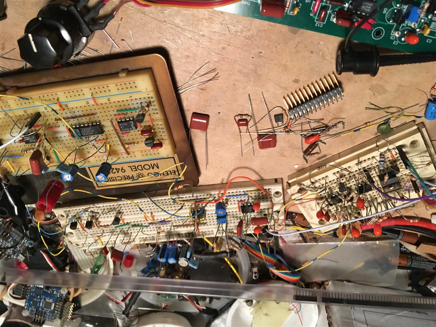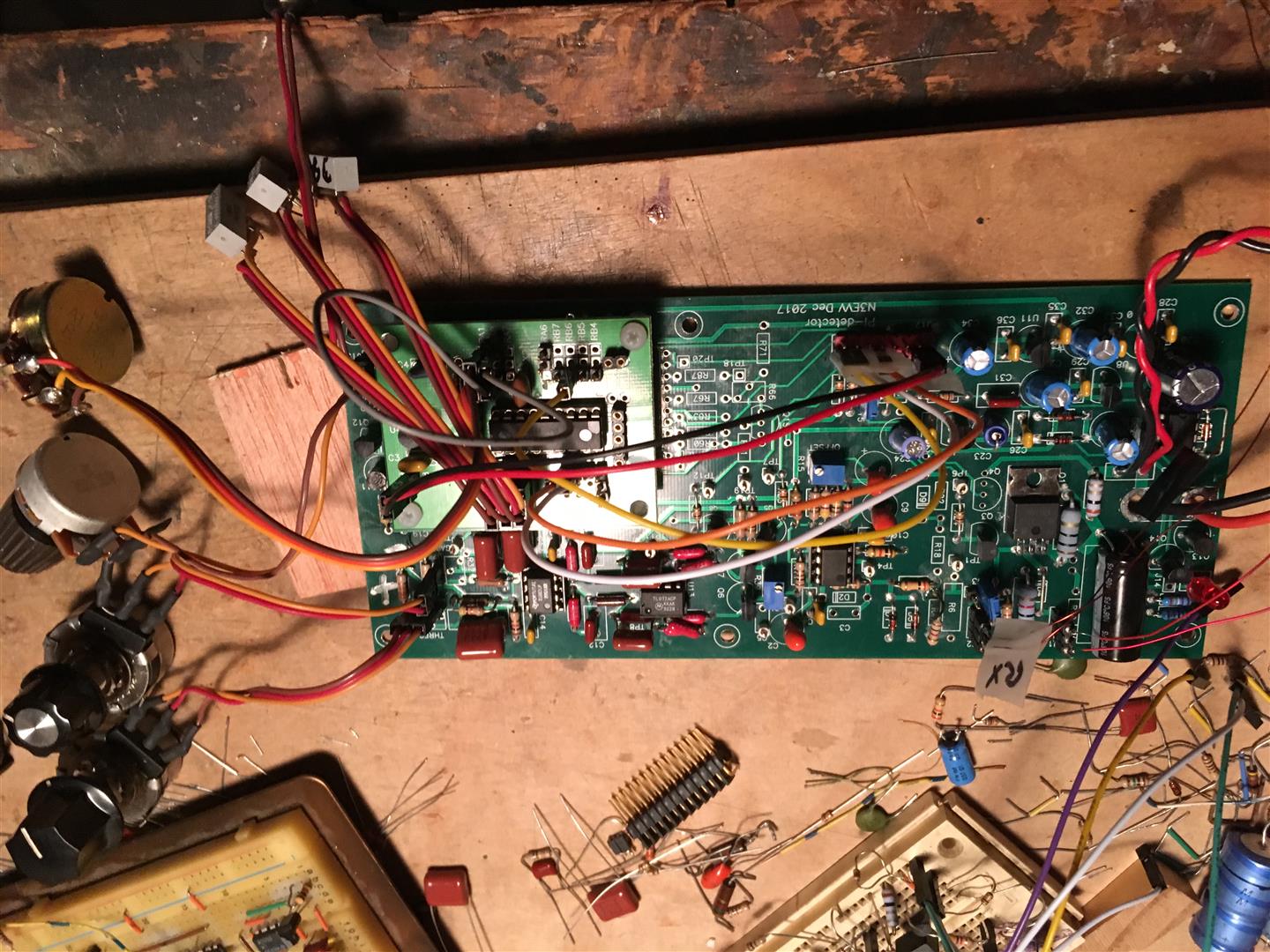 On proto-boards I built up the HH detector with whatever parts I had on hand making a few substitutes. However, when first studying the HH schematics I went to a PIC processor instead of using all those timing chips. I've been using PICs for projects for a few decades so writing timing code is pretty easy. I had made PIC project PCBs so years ago for 18 and 28 pin PICs so used one to do the timing.