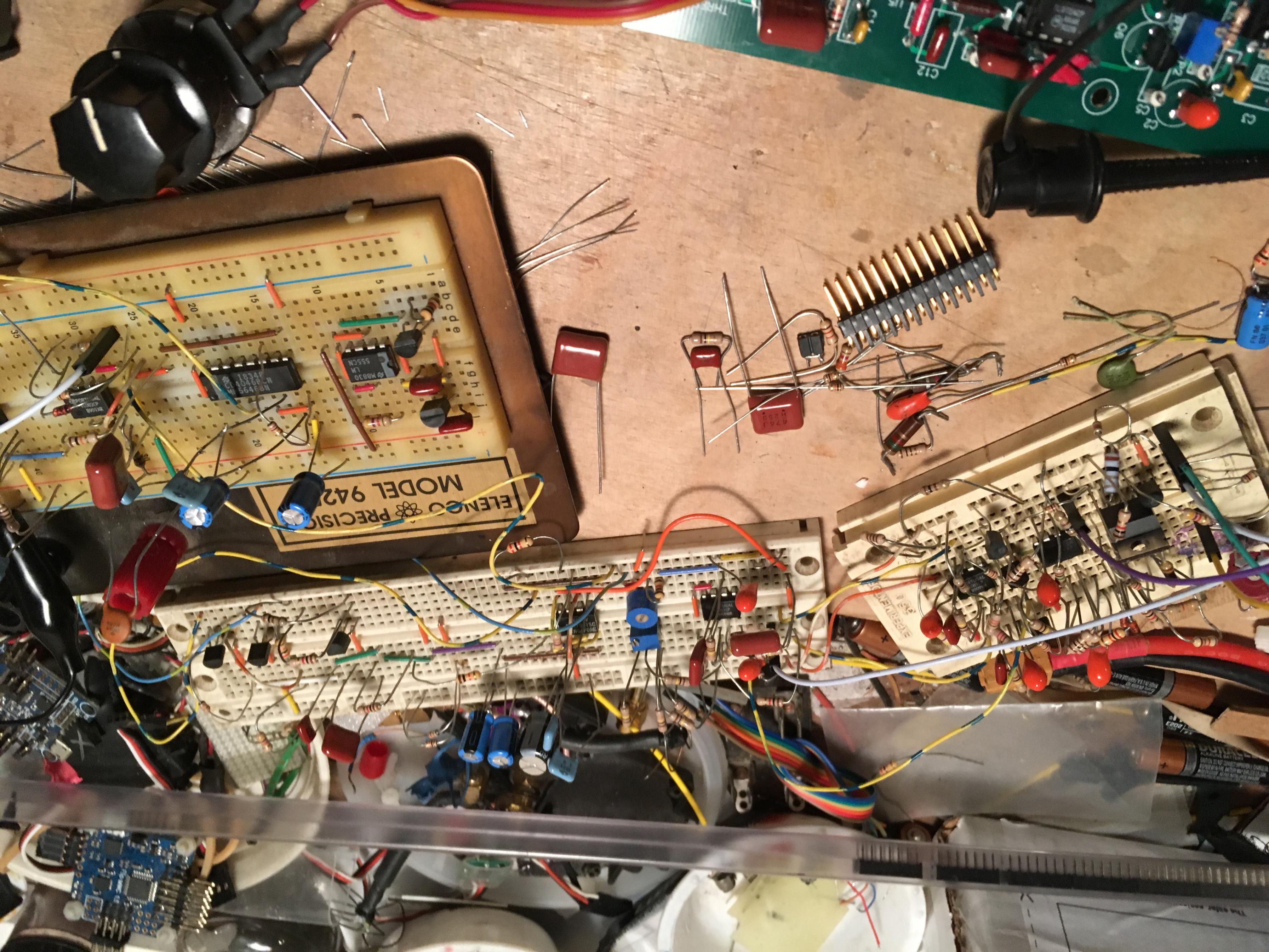 After watching the British TV show "The Detectorists" it seemed that the detecting parts were very accurate so started doing research on how these metal detectors work. Lance did have a CTX3030. Found the Geotech1.com site of Metal Detector Projects. Got out my proto-boards and started building and experimenting. After playing with BFO detector tried the basic PI detector and liked how this worked.