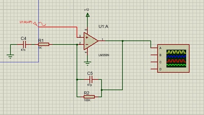output of LM358 for 1K input frequency: