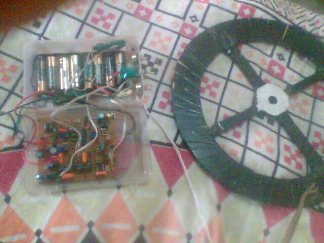 I have made a coil which is 1X1 square meter 26 awg by 30 turns. I changed condenser c8.01 to c8.1, r3 1.5 ohms to r3 680 ohms, r4 10k to r4 1k and r12 1k to r12 2.2k.