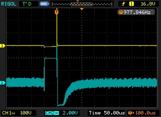 What are the details of your coil? The timebase on your scope is set to 50us, and the RX signal is still settling. Or perhaps your damping resistor is not the optimum value?Originally posted by joop View PostI am attempting a REV B build, just finished the RX stage. The signal at TP3 seems a bit noisy, is this normal? This is without the sampling integrator added, which starts with R18. Picture attached. Top trace is the flyback signal.
