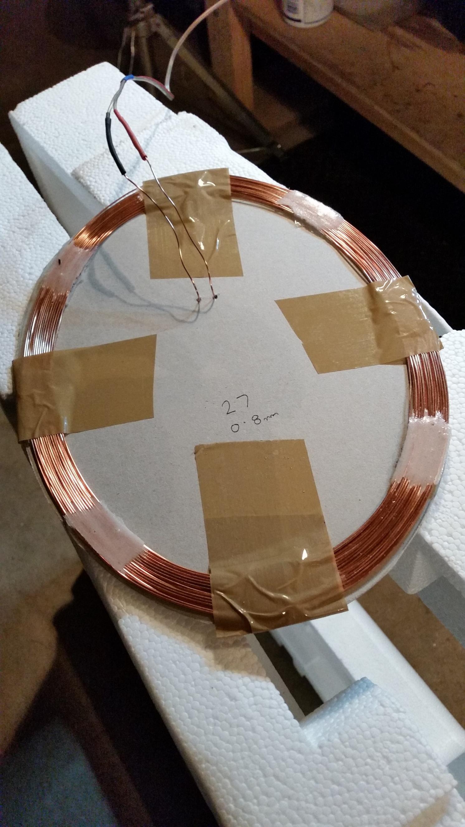 He was able to detect an Australian dollar coin similar to a euro at around 15cm. Although the coil has very little interwinding capacitance, and has a measured inductance of 300uH, he feels that he can improve on the coil design.