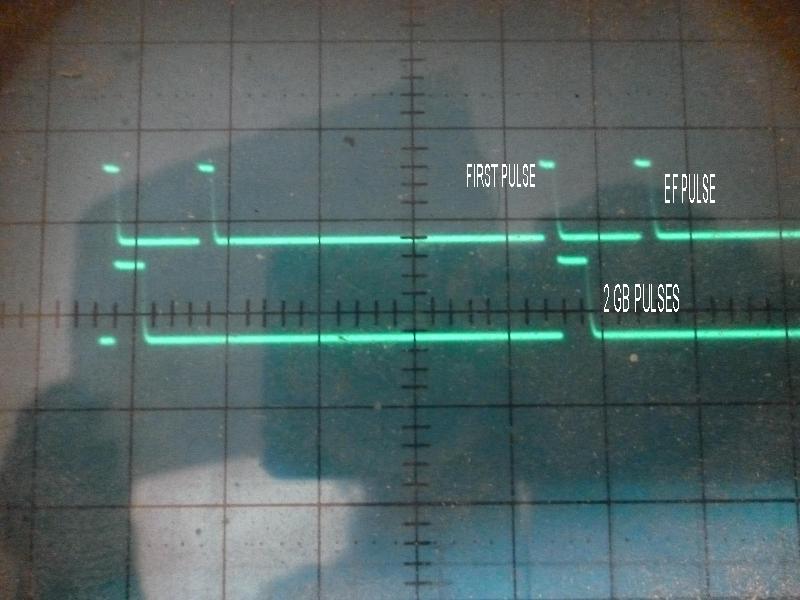 you can easily see the first pulse , EF pulse, the 2 combined GB pulses, the pulse widths track with the time base pot ,