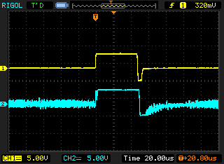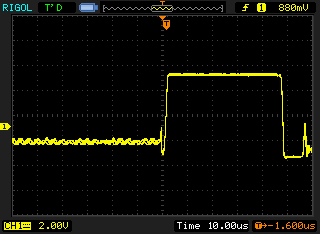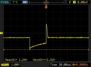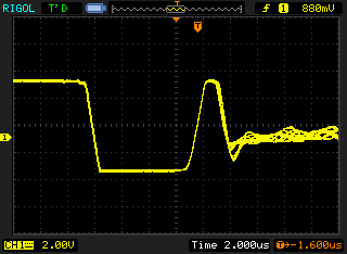 Then it slowly transitions to the final (correct, based on other scope screenshots on the forum) waveform: