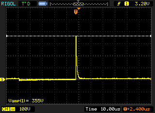 However the output of the first stage is already about +- 4v, ie almost saturated, is there a problem with the flyback signal? It is always overdamped, regardless of how much I decrease the damping resistance (I used the damping resistor pot setup you described in another thread). Changing the damping resistance does change the peak voltage, (200-450v). Here's a shot of the flyback signal: