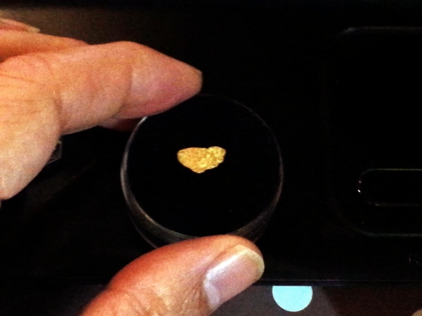 Met people who are detecting nuggets in old riverbeds but I hadn't the time to gove it a try. Panning did show up some flakes, though: