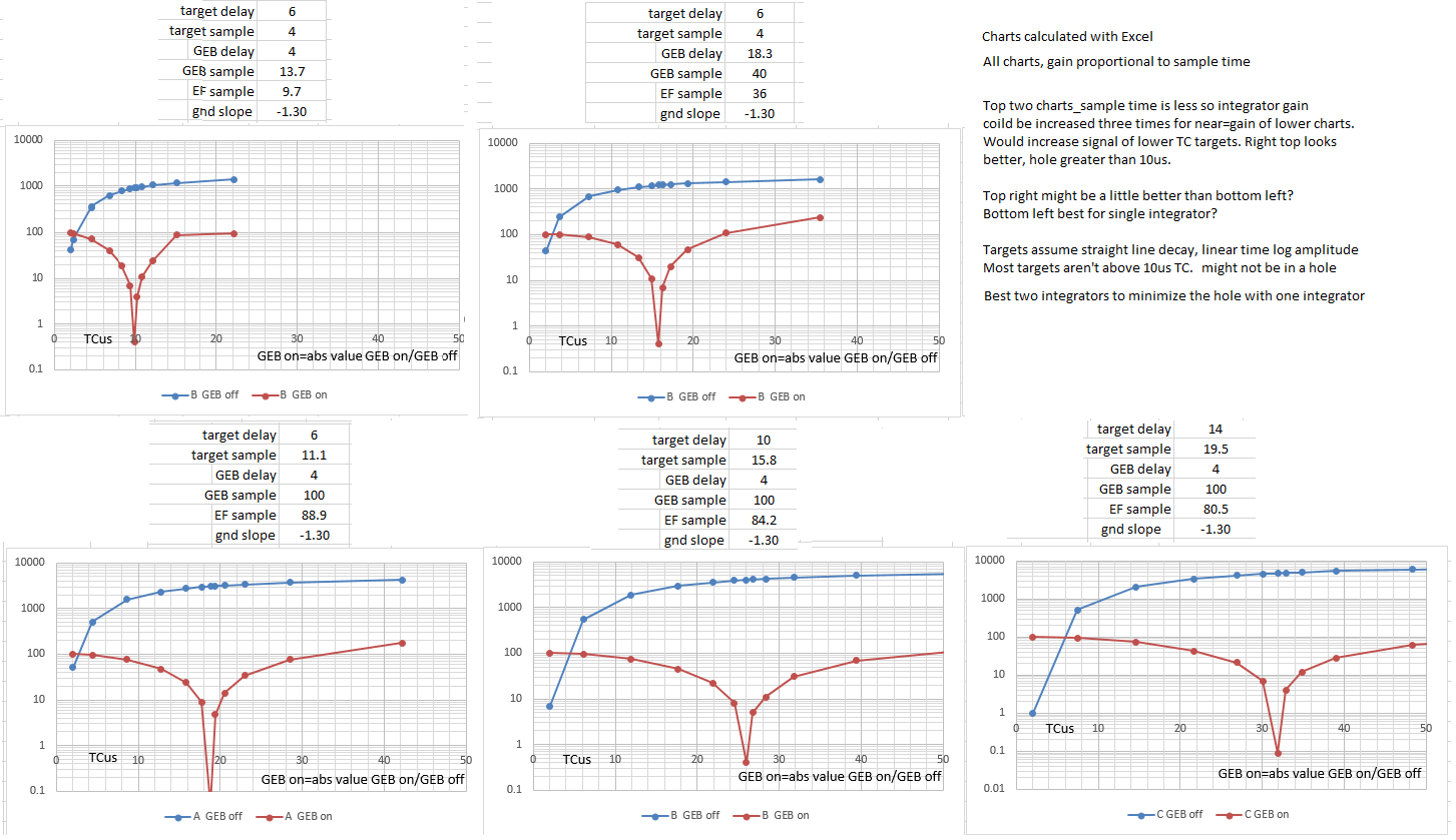 Next, find the best target and ground sample times to cancel ground signal and best eliminate the holes with two integrators for short and long(any)TC targets. Any thoughts?