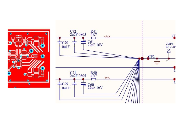 Is there maybe a third PCB layer of contiguous ground inside the PCB?
