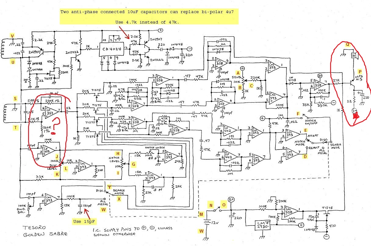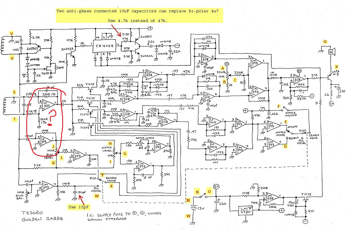 I did two assemblies and both have the same symptoms, I disassembled one and I checked all the active parts IC, transistors in TGSL edu and are good BF245C, 2N2222, 2N2907A, LF353N, LM358N, LM393N, LF442CN, LM308N, HCF4024BE, MPS A14 are ok.Am made ​​3 pairs of coils, we modified oscillator using EDU TGSL scheme did not work, everything sounds continue, I sound like the EDU so on, and so I rebuilt .... But someone has done this scheme? I checked 3 times LAY check again, excuse my English, all the best