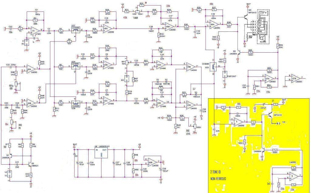 Here you have a 2-tone scheme. I have tested and works perfectly. The only problem is that the hot rocks, are detected with a low tone, like iron.