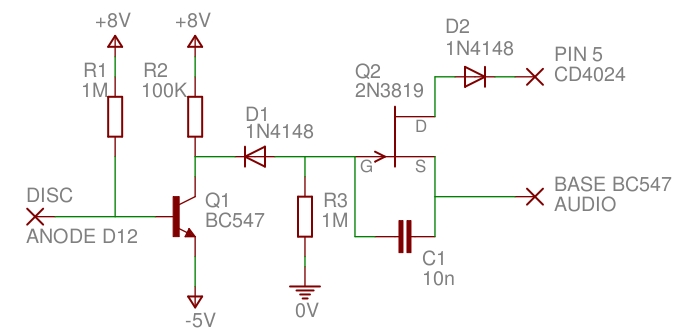 In Audio disc mode, without signal, the FET is ON.The audio stage is connected to the PIN 5 of the CD4024 through it.