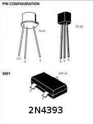 The pinout of the 2N4393 is different from the 2N3819. Gate and Source are reversed.