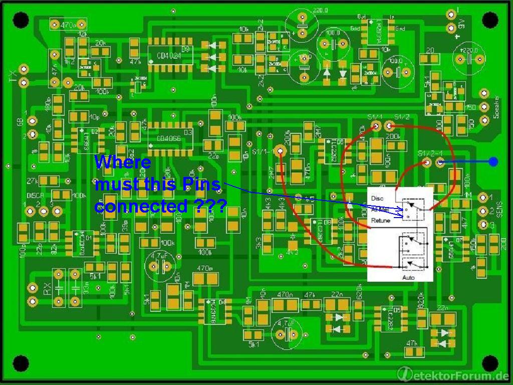 There is also three pads if you want to use the minelab coil addon card (Red spots).