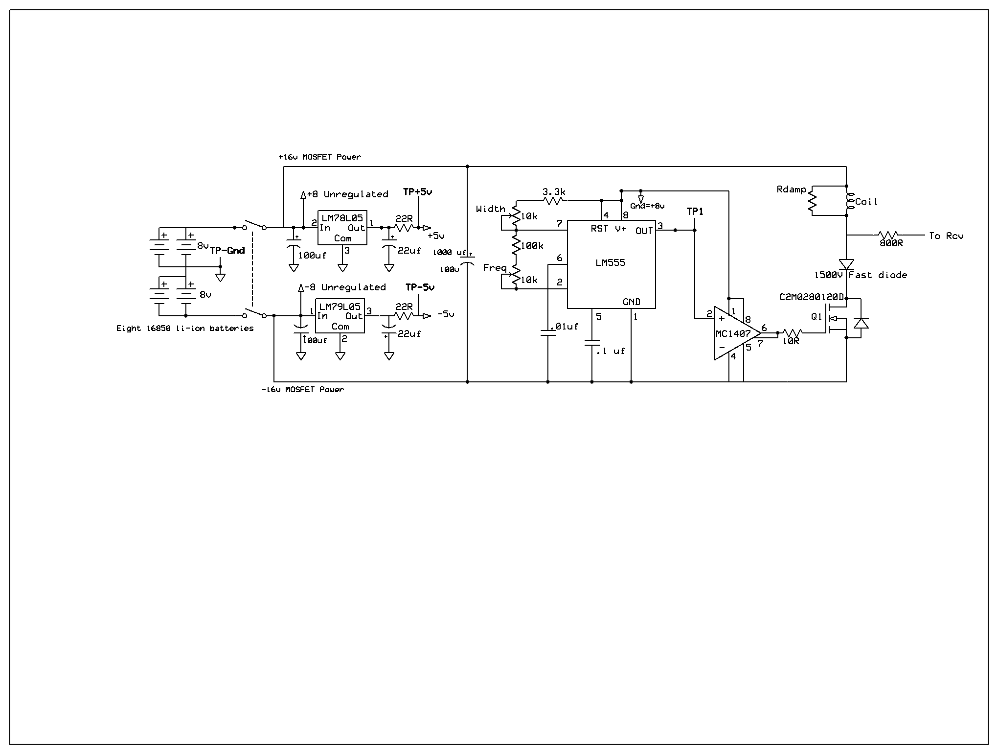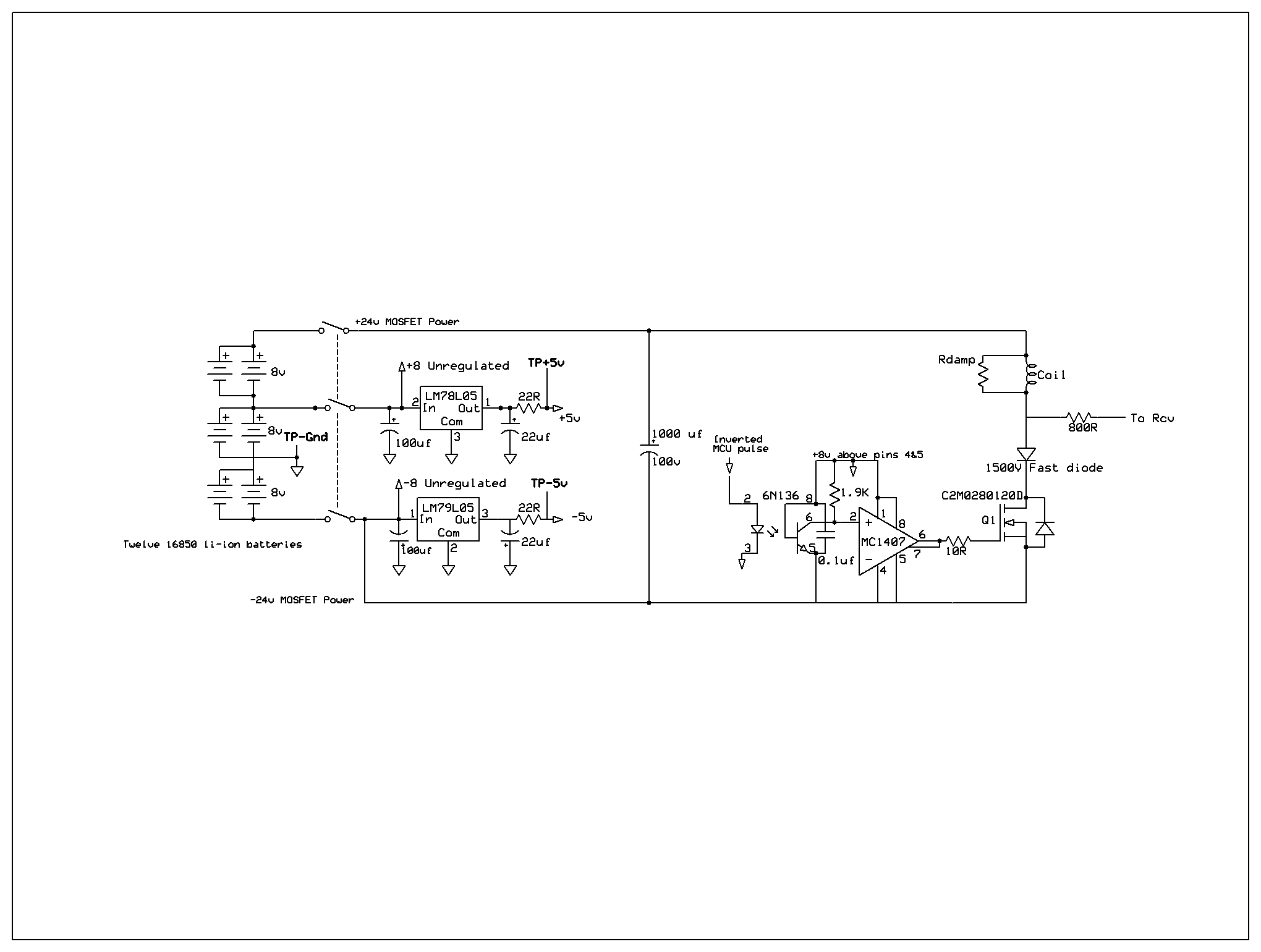 Attached are some alternate power supply ideas to consider and work with. A few thoughts went into them; more transmit power, no noise from voltage converters and some separation between transmit and receive circuits. Circuit boards should have as much copper area and heavy traces as possible to help prevent ground noise.