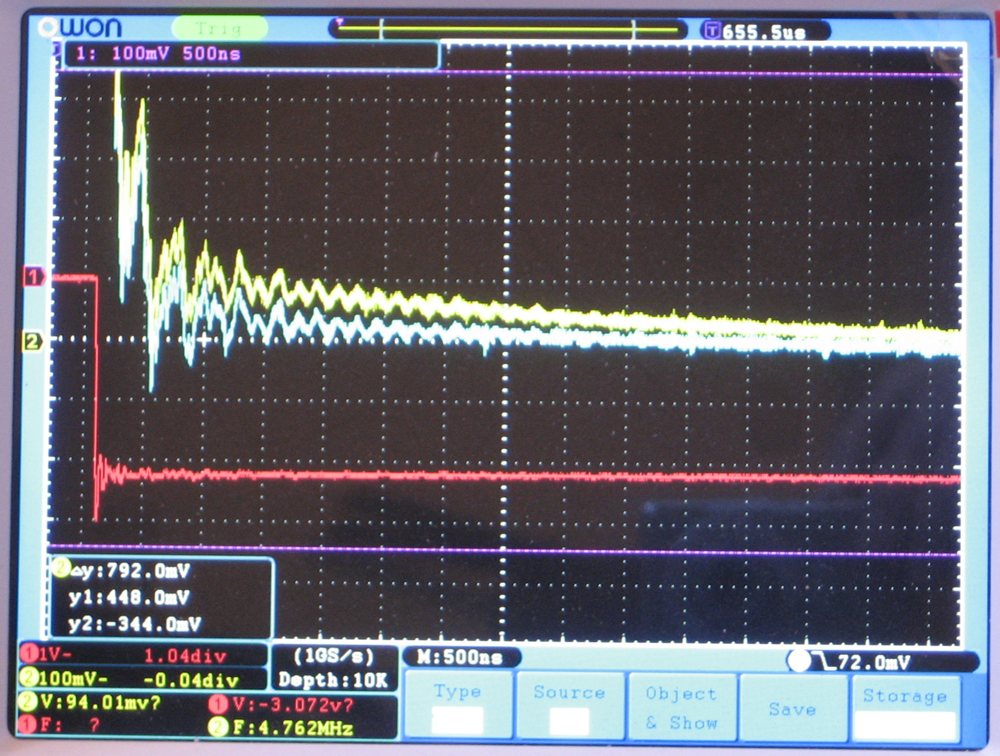 The picture shows the scope set at 500ns