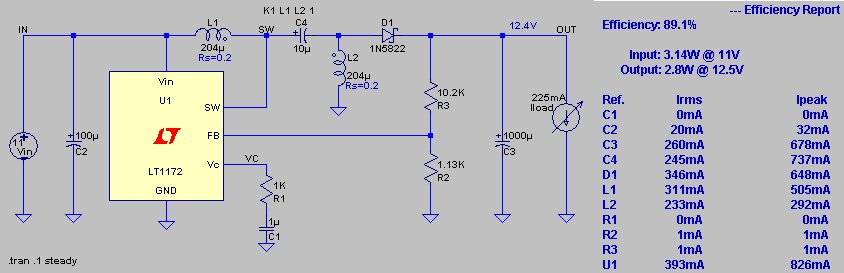 We boost the voltage with a capacitor charge pump and regulate it from 8 to 12V