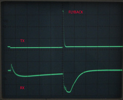 The second pix shows the scope with the TX and RX and no target. The TX is about 90uS. The response appears during TX and after TX off. Observe how different the response is to the different targets.