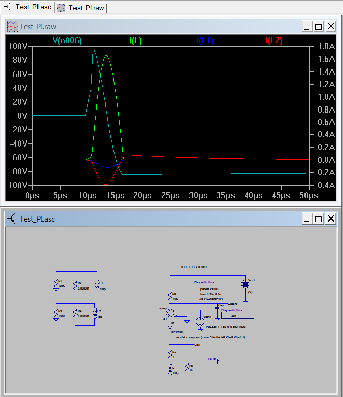 Here is the zip with the traditional PI and the test_PI. I think that to put the result on the same graph, you need to re-draw one of the asc files onto the other one.Originally posted by simonbaker View PostHey Tinkerer, can you post the LTSpice file?