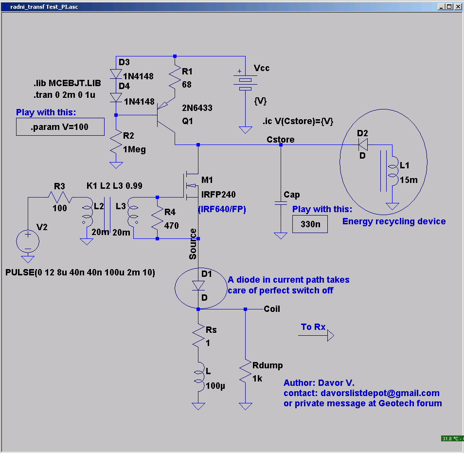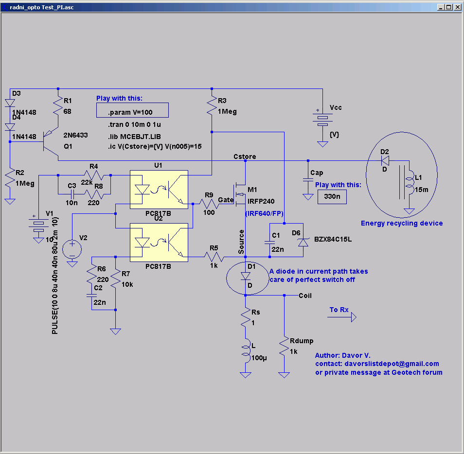 So, being in a PI end of the world, let’s pretend that it is a monocoil we wish to cherish - no matter what. In such a case we need a strong di/dt pulse (voltage spike) followed by instantaneous recovery, and almost immediate Rx sampling. If humanly possible, we also wish to have all transitions free from stress against the switching electronics as they never bode well in pursuit of faint signals e.g. deep treasure.