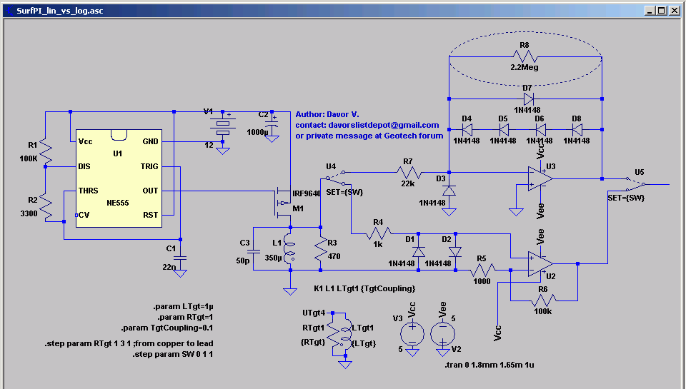 Hi Davor,Originally posted by Davor View PostIt seem only appropriate to continue here where we left some time ago. Now this is big. I present you a LTspice simulation of a logarithmic weighted PI Rx with dead time of less than 2 microseconds. Furthermore, its output is logarithmically compressed so there will be much fewer bits required for ADC, where required.