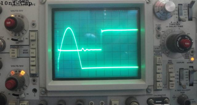 Here are some pictures. It is the TX-Controll-window (5V/div) and the flyback (50V/div) in 2us/div. They look´s better than the pictures from 18nm80. First picture is with 10nF Flyback-Cap. Second is with 20 nF. The flyback is reduced with the 20 nF cap for 75 V. I think, that is not so good.