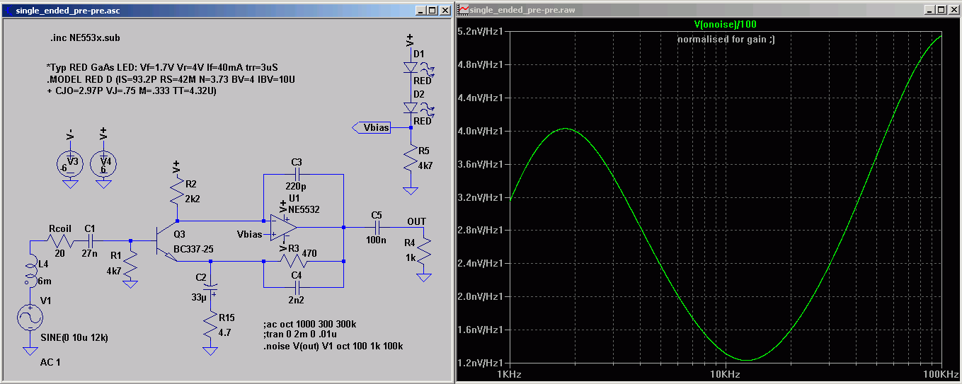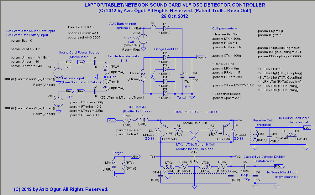 ) or using a low voltage battery (3 V or whatever you like). No amplifier required by using a high inductivity RX resonant coil (resonance frequency nearby the TX frequency). Set TX frequency whatever you prefer and adjust the RX frequency for your configuration.