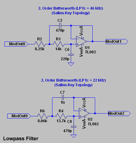 I also can combine the modulator with the mixer into one circuit. The only disadvantage will be, that I will need two buffering op-amp's and two JFET's per channel (total 8 ). One op-amp for non-inverting and the other one for inverting signal. Some JFET's have a lower cut-off threshold voltage (e.g. BF245A) and they can be switched with the -5V digital power supply potential. The -9V gets obsolete and will be replaced by -5V (analog) in which no level shifting for switching logic is necessary anymore. The logic signals q1..q4 and the inverted of them /q1../q4 will control the JFET's directly.