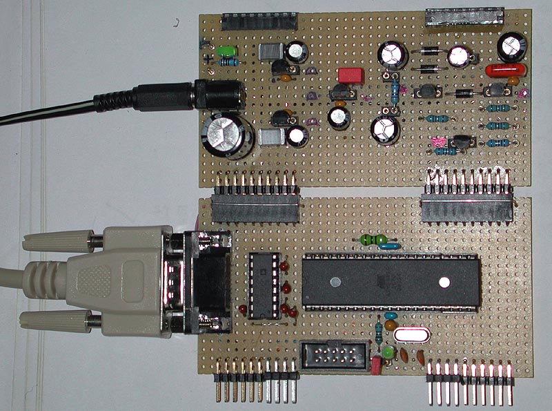 Tomorrow, I will add the RS232 interface circuit. A terminal software will help debugging the firmware software. It is almost a "blind" development as I haven't an in-system debugger with JTAG interface. Therefore some LED's and switches will be added to support debugging and development.