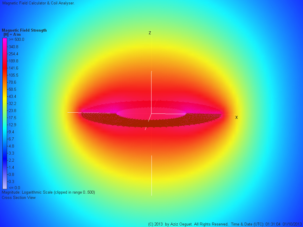 Beginning from 0.5 unit diameter (=5 inch) and ending at 1.0 unit diameter (=10 inch). 35 loop turns (but I'm using internally in my coil software N=34.7).