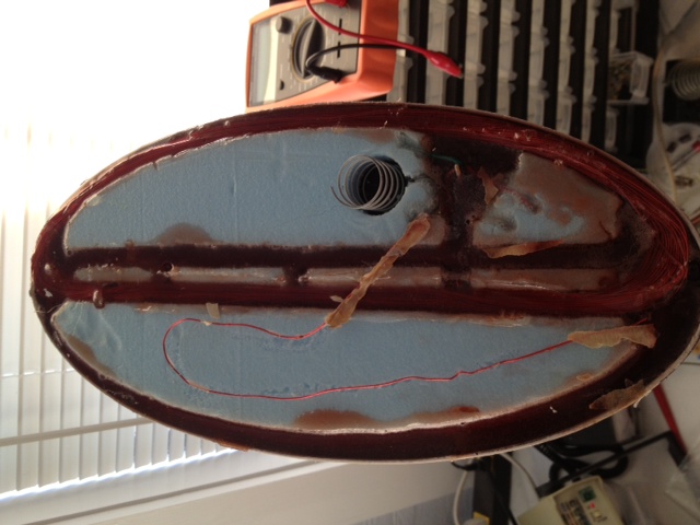 thought I would show you what I found. The coils are sealed in epoxy except for the final nulling loop. It was just held down by masking tape. It appeared that moisture had made its way into the coil and the tape