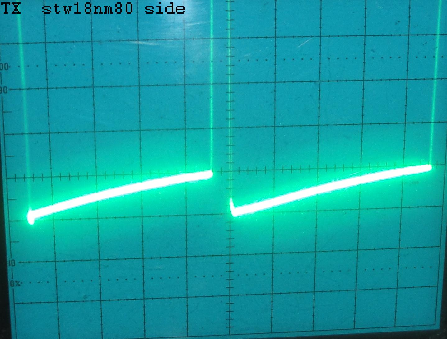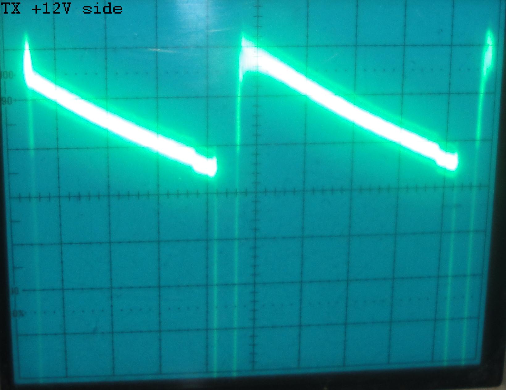 I have used the scope with 5V/Div and 20uS/Div. I didn´t connect ground, therefor the lines are not so clear.