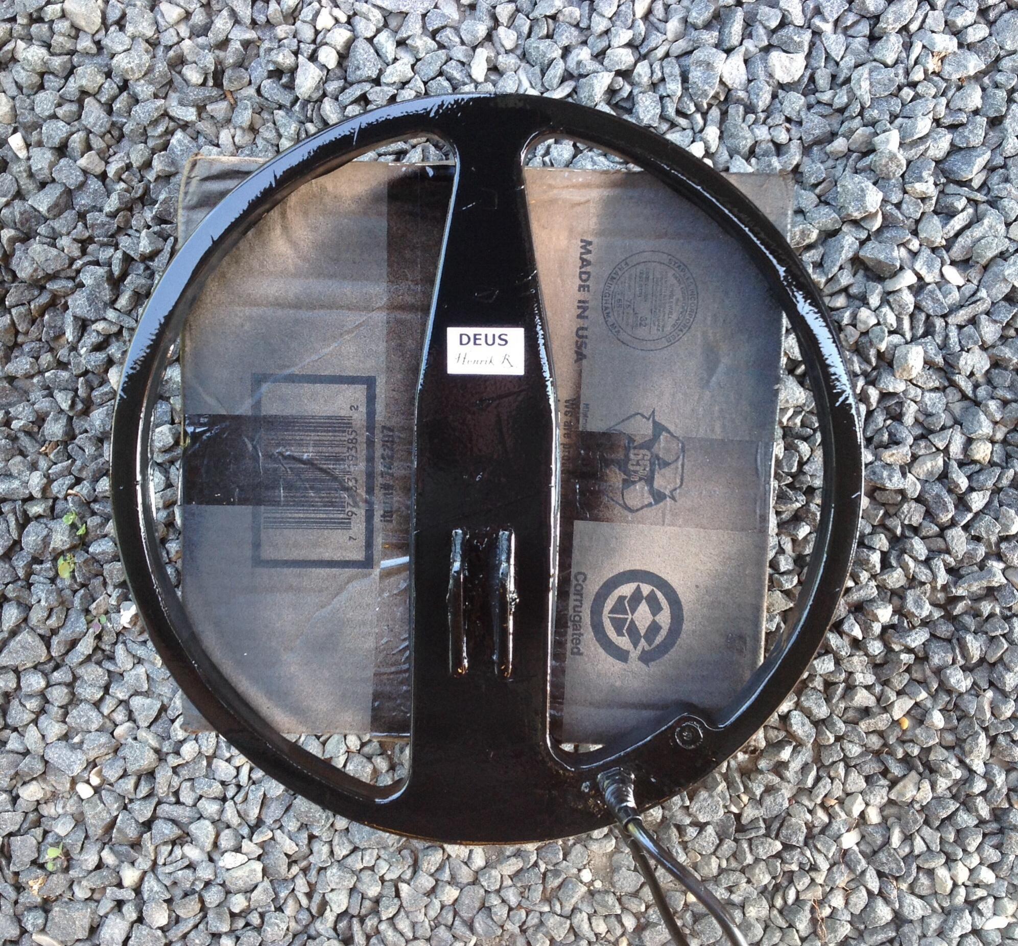 ... My 15" Deus coil got a new shielding this evening. Maybee you saw the coil clean, ready to get painted..( Picture.) My mixture with acetone, powder and lak was sprayed in a medium lay, then I used a Big brush to make a smooth surface and removed lose dust, before I finish with the protection lak.