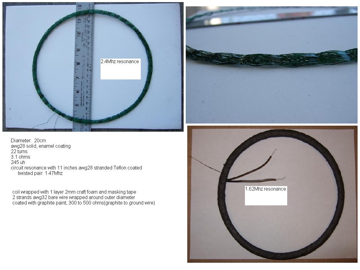 Green,Originally posted by green View PostThanks for the reply. As you can see from the photo I have enough wire if I can make the magnet wire work. The shielded coil resonance for the test coil is 2.14 Mhz. Reading "Making a Fast Coil" a 300 uh, 10.5 inch diameter coil made with Teflon coated wire would have a resonance near 1.25 Mhz not shielded and 1 Mhz shielded, coax not connected. Are those good numbers or should the resonances be higher? Think I need to try a 10.5 inch diameter, 300 uh coil and would like resonance numbers to try for.