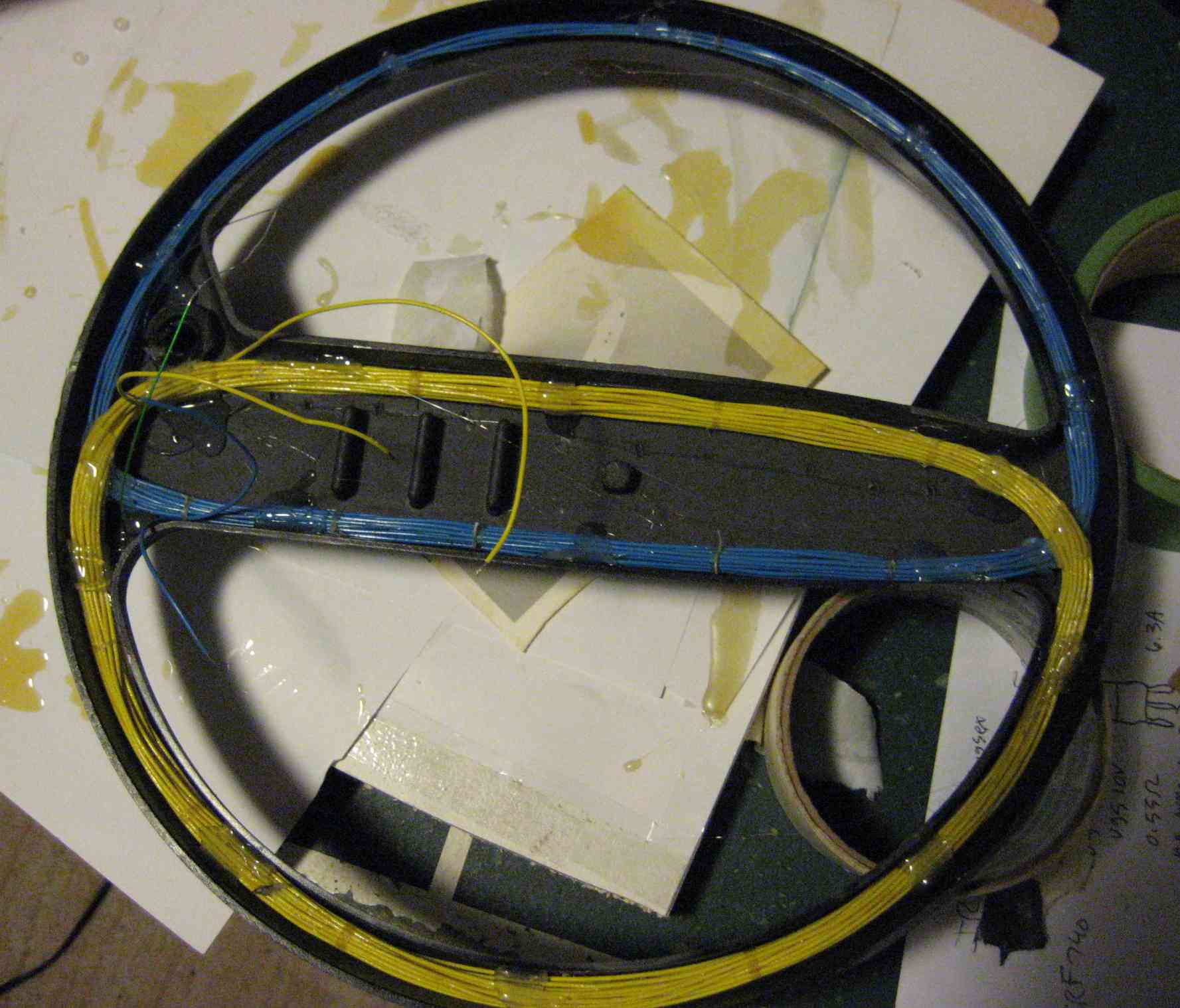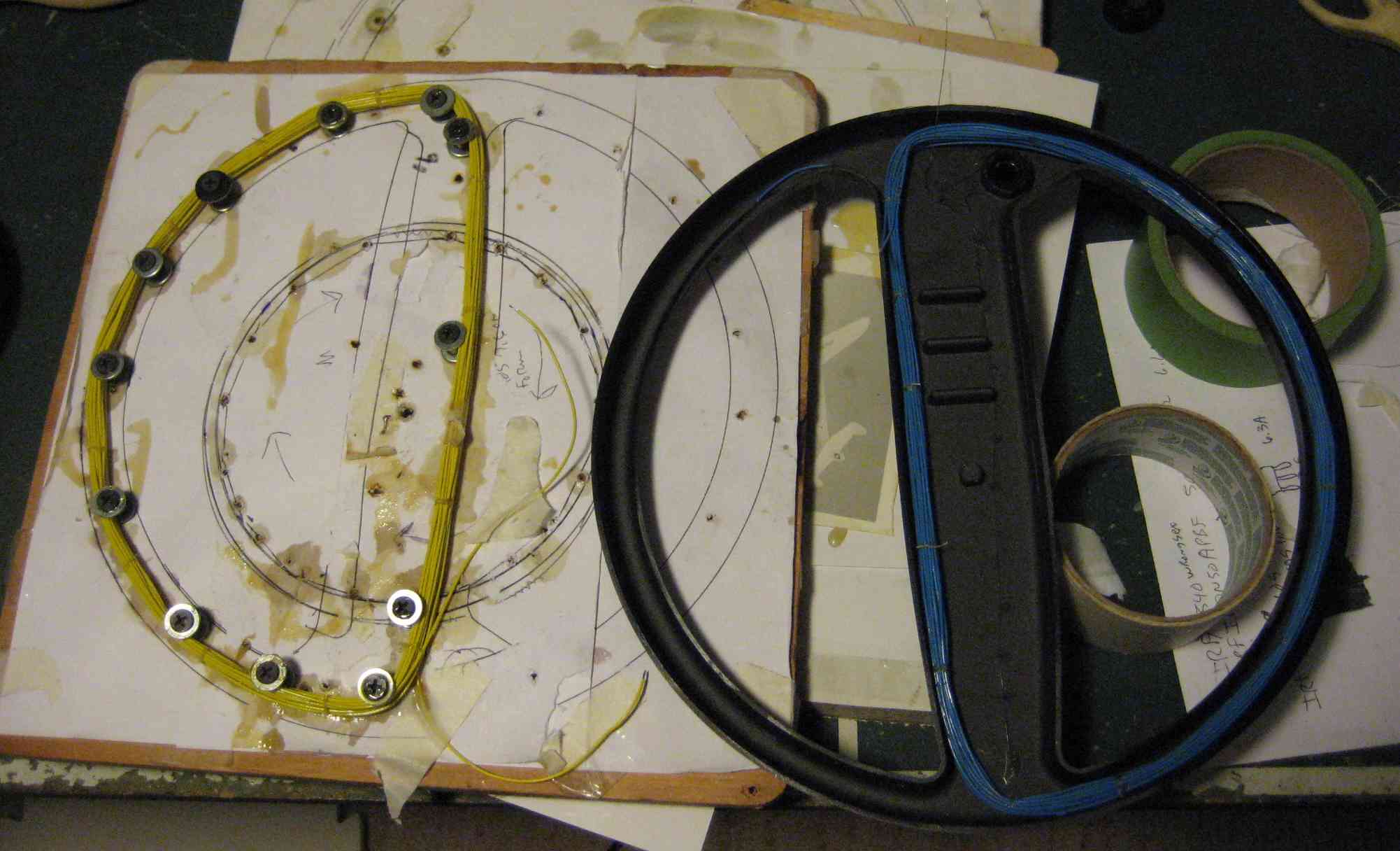 I decided to make a 10" "DD" Pi coil. I wound up some awg 24 PVC wire 24 turns for each coil.