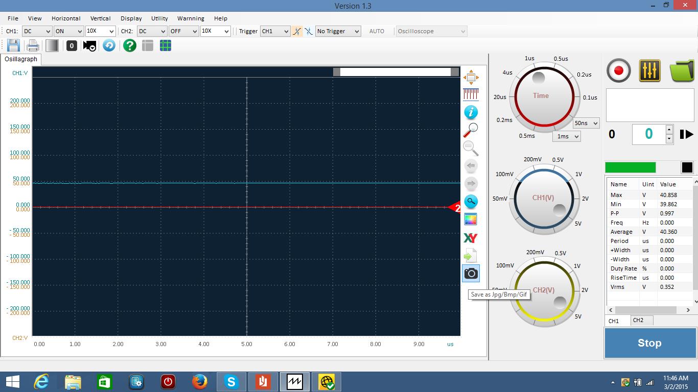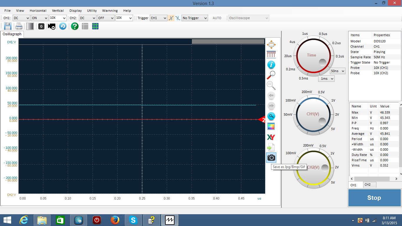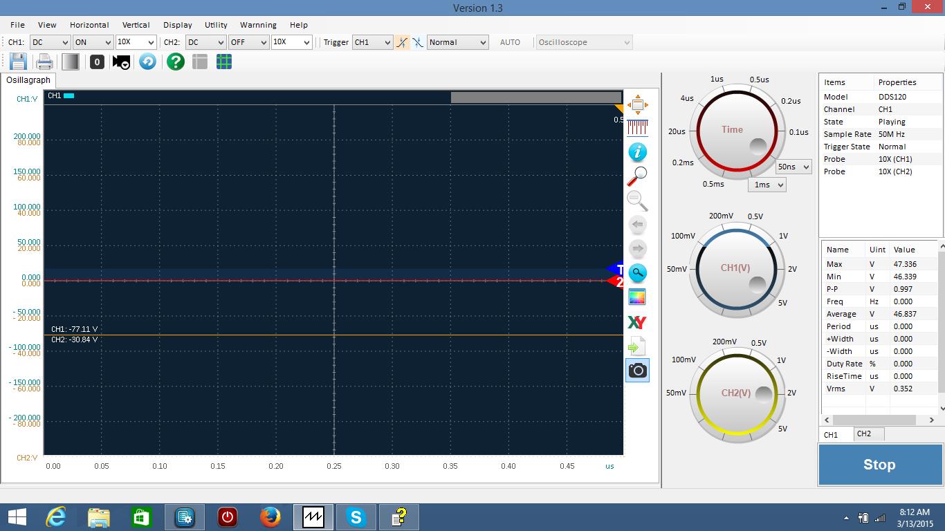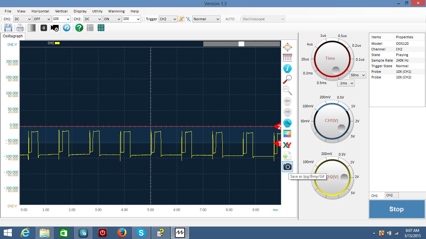 run 1 and 4 (TX) , I thought were showing 40-48 volts. I switched the probe from one side of the coil to the other. Run 2 and 3 (RX) are showing -38 volts or so, whatever that means. Again, I switched the probe from one side of the coil to the other. If you look at the top of the screen you sill see that I have "no trigger" in the box. Could that be the problem? When I hook the scope to the test piece that puts out some voltage on the scope itself, I can see the square sign wave.